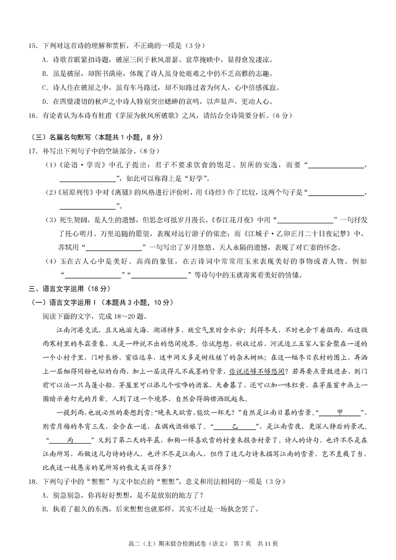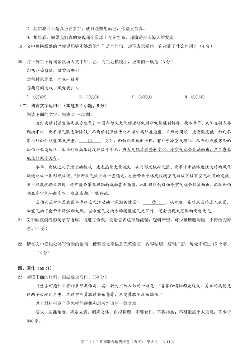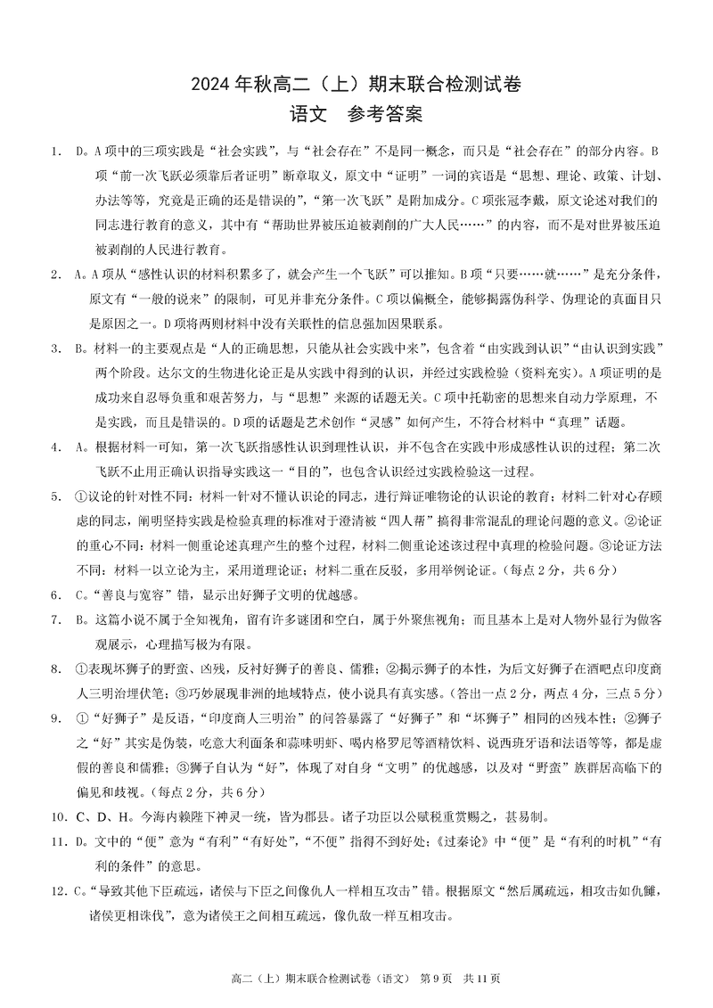 重庆康德2024年秋高二上学期期末语文试题及答案 时间:2025-01-27 重庆 高中语文 重庆康德2024年秋高二上学期期末语文考试已于近日开考,为方便考生考后及时查看考试情况,查漏补缺、弥补不足,本文整理了试题答案解析相关信息! 语文试题及答案解析