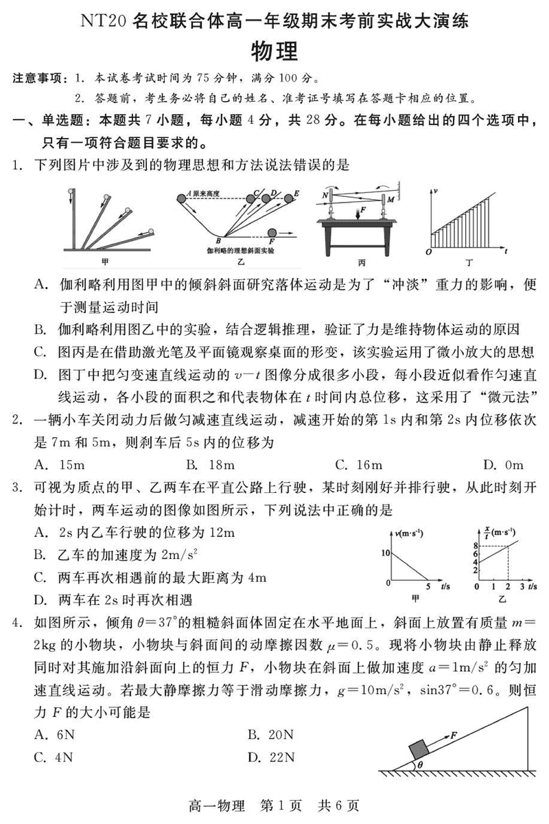 邯郸NT20名校联合体2024-2025学年高一上学期期末考前实战大演练物理考试已于近日开考,为方便考生考后及时查看考试情况,查漏补缺、弥补不足,本文整理了试题答案解析相关信息!