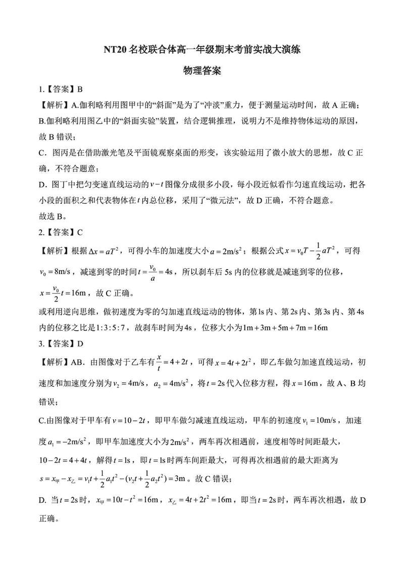 邯郸NT20名校联合体2024-2025学年高一上学期期末考前实战大演练物理试题及答案