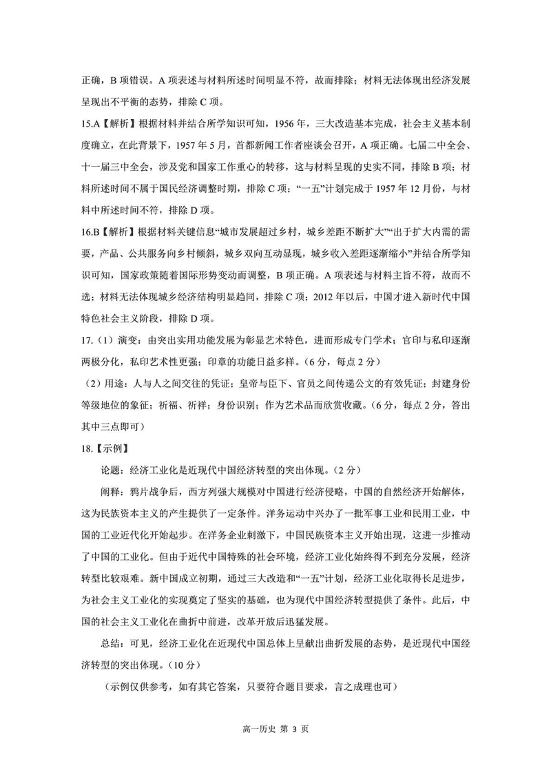 邯郸NT20名校联合体2024-2025学年高一上学期期末考前实战大演练历史试题及答案