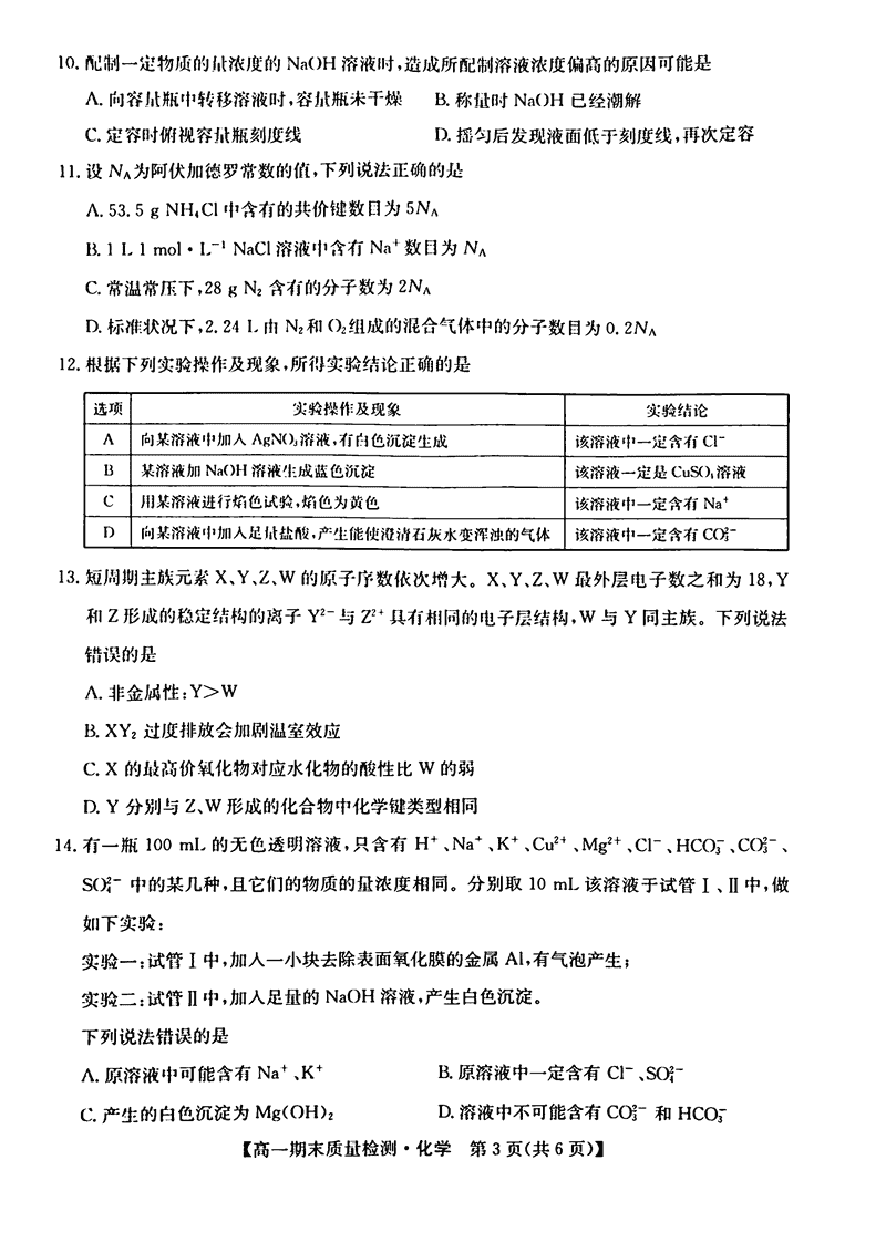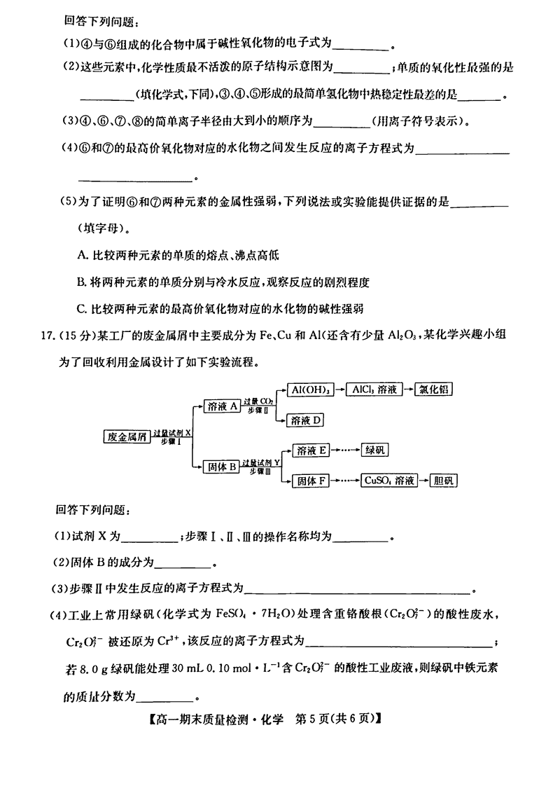 陕西榆林八校联考2024-2025学年高一上学期1月期末化学试题及答案 时间:2025-01-27 陕西 高中化学 陕西省榆林市八校联考2024-2025学年高一上学期1月期末化学考试已于近日开考,为方便考生考后及时查看考试情况,查漏补缺、弥补不足,本文整理了试题答案解析相关信息! 化学试题及答案解析
