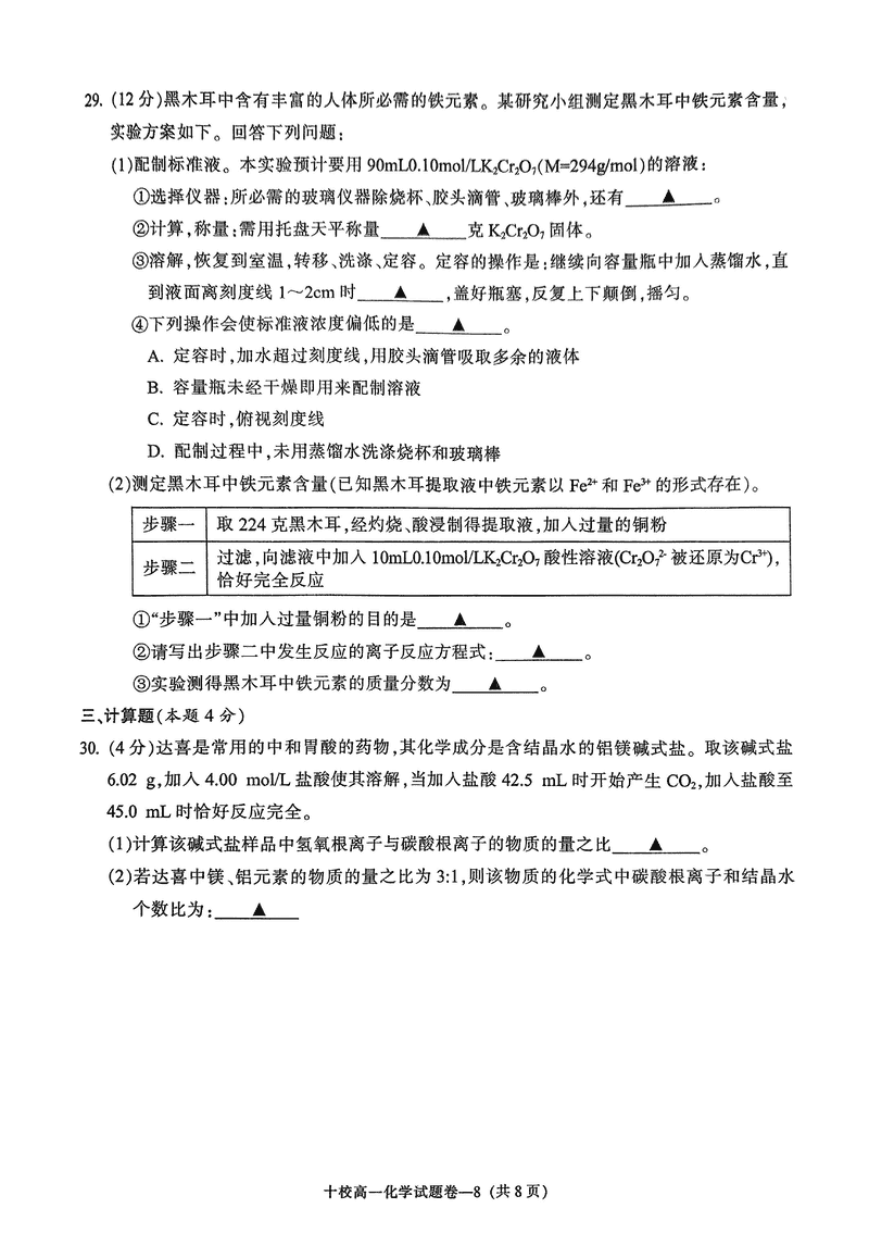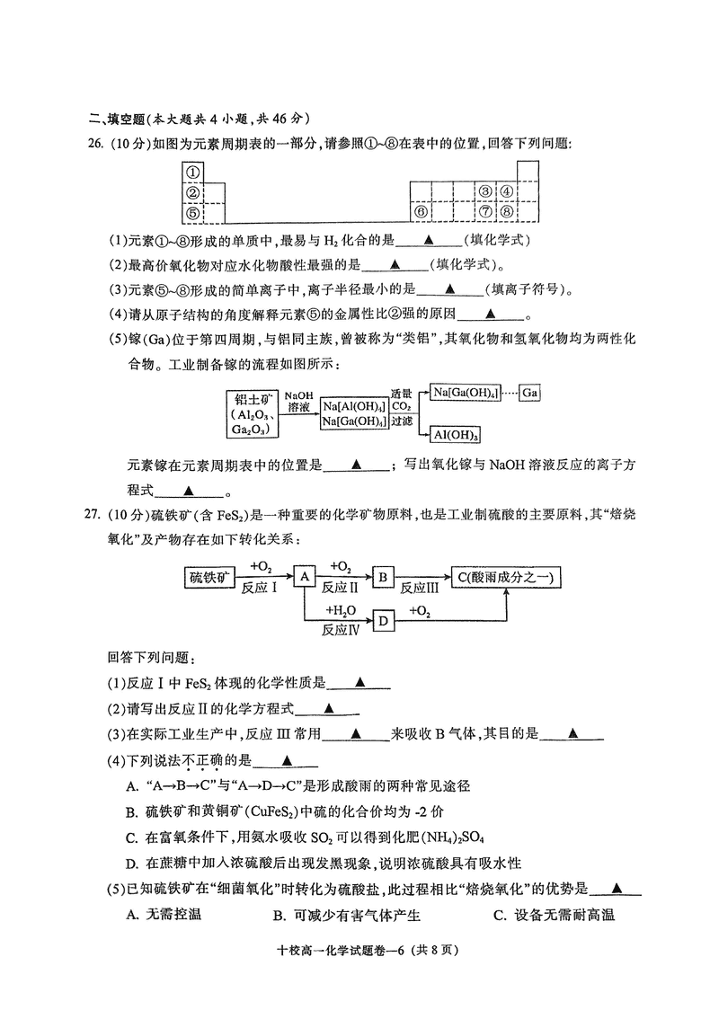 浙江金华十校2024-2025学年高一上学期期末调研化学试题及答案 时间:2025-01-27 浙江 高中化学 浙江省金华十校2024-2025学年高一上学期期末调研化学考试已于近日开考,为方便考生考后及时查看考试情况,查漏补缺、弥补不足,本文整理了试题答案解析相关信息! 化学试题及答案解析