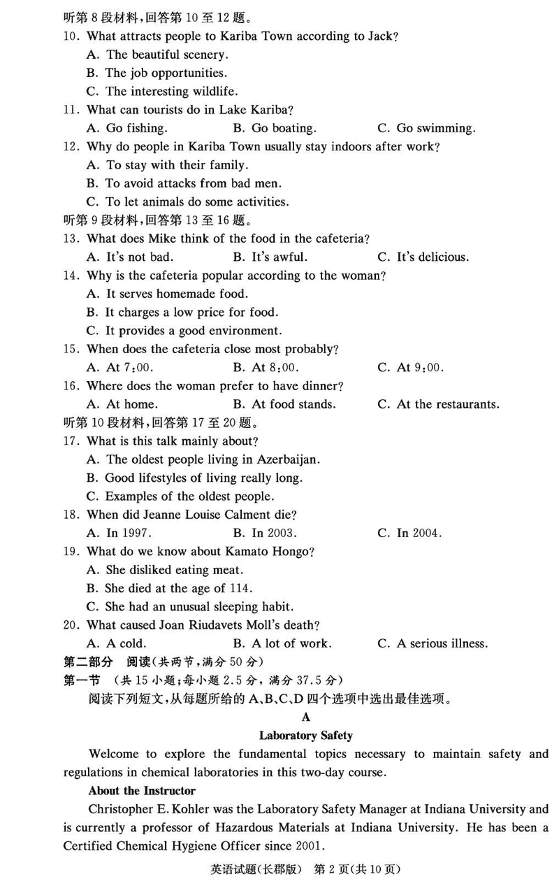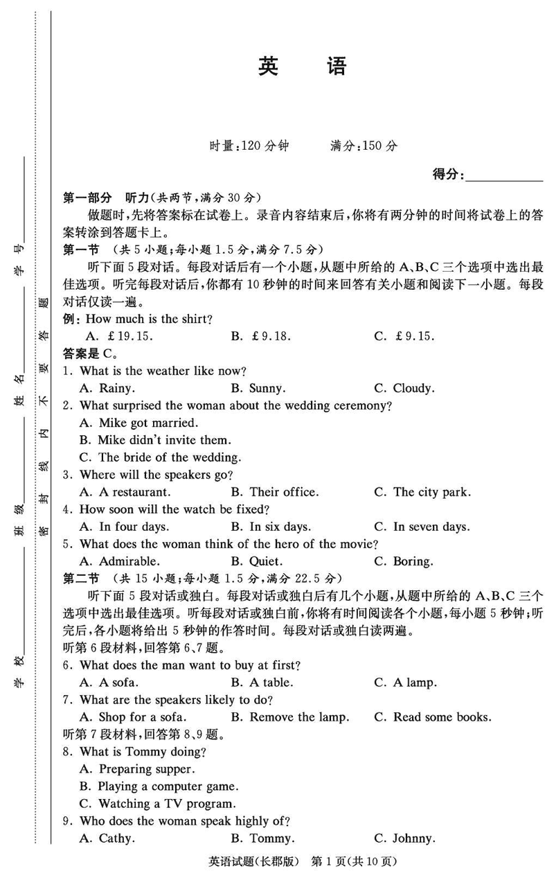 湖南长郡中学2024-2025学年高二上学期期末英语试题及答案 时间:2025-01-27 湖南 高中英语 湖南省长沙市长郡中学2024-2025学年高二上学期期末英语考试已于近日开考,为方便考生考后及时查看考试情况,查漏补缺、弥补不足,本文整理了试题答案解析相关信息! 英语试题及答案解析