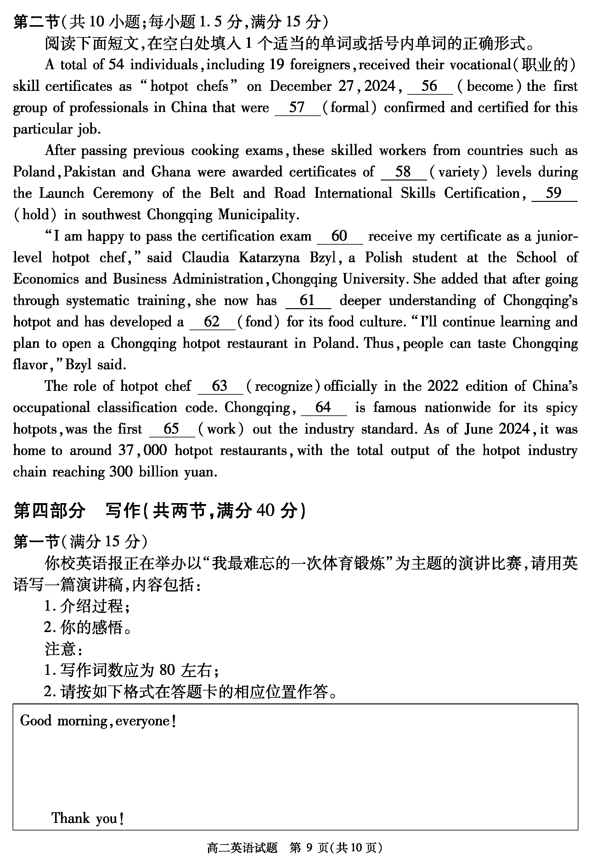 自贡市、遂宁市、广安市等2024-2025学年高二上学期期末英语试题及答案