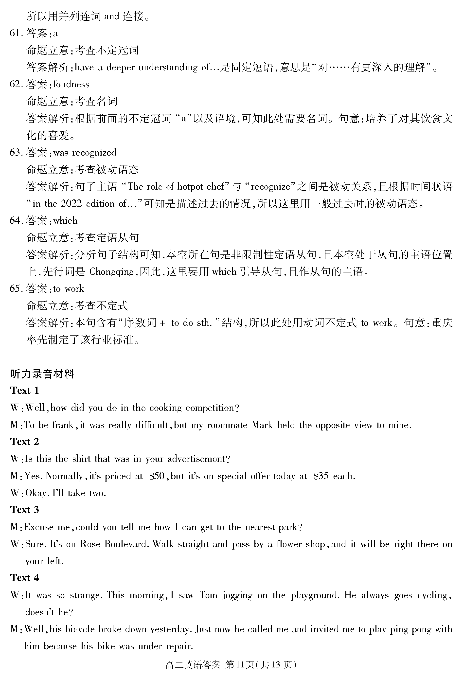 四川自贡市、遂宁市、广安市等2024-2025学年高二上学期期末英语考试已于近日开考,为方便考生考后及时查看考试情况,查漏补缺、弥补不足,本文整理了试题答案解析相关信息!