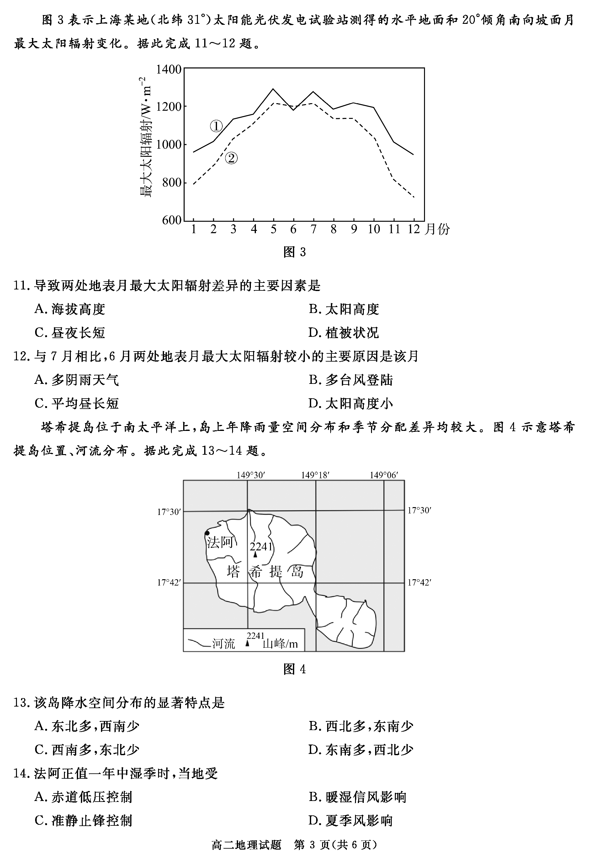 自贡市、遂宁市、广安市等2024-2025学年高二上学期期末地理试题及答案