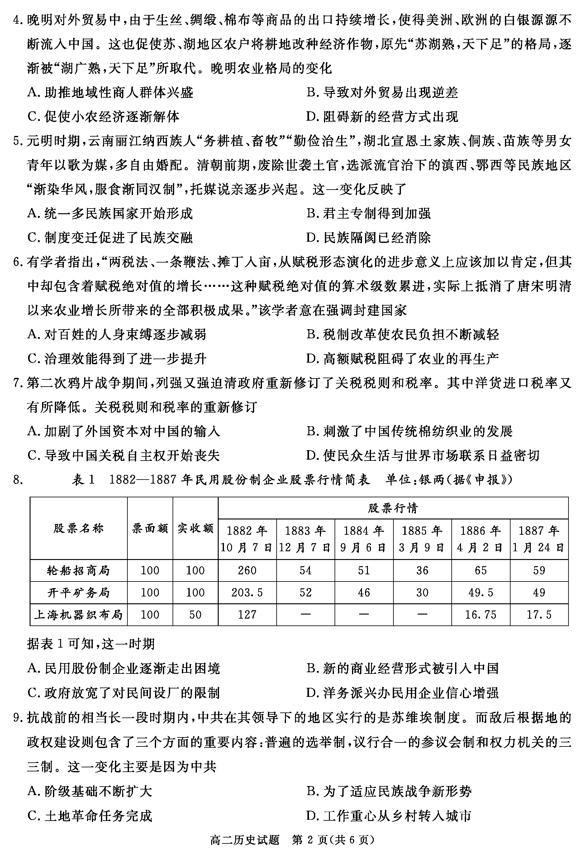 自贡市、遂宁市、广安市等2024-2025学年高二上学期期末历史试题及答案