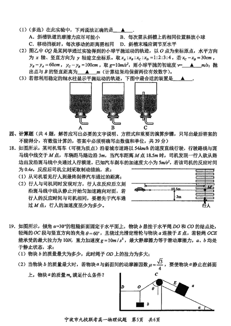 宁波九校2024-2025学年高一上学期期末物理试题及答案 时间:2025-01-27 浙江 高中物理 浙江省宁波市九校2024-2025学年高一上学期期末物理考试已于近日开考,为方便考生考后及时查看考试情况,查漏补缺、弥补不足,本文整理了试题答案解析相关信息! 物理试题及答案解析
