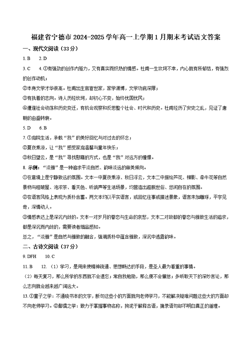 福建宁德2024-2025学年高一上学期1月期末语文试题及答案 时间:2025-01-27 福建 高中语文 福建宁德2024-2025学年高一上学期1月期末语文考试已于近日开考,为方便考生考后及时查看考试情况,查漏补缺、弥补不足,本文整理了试题答案解析相关信息! 语文试题及答案解析
