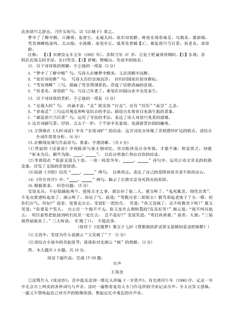 北京市丰台区2024-2025学年高二上学期期末语文试题及答案 时间:2025-01-27 北京 高中语文 北京市丰台区2024-2025学年高二上学期期末语文考试已于近日开考,为方便考生考后及时查看考试情况,查漏补缺、弥补不足,本文整理了试题答案解析相关信息! 语文试题及答案解析