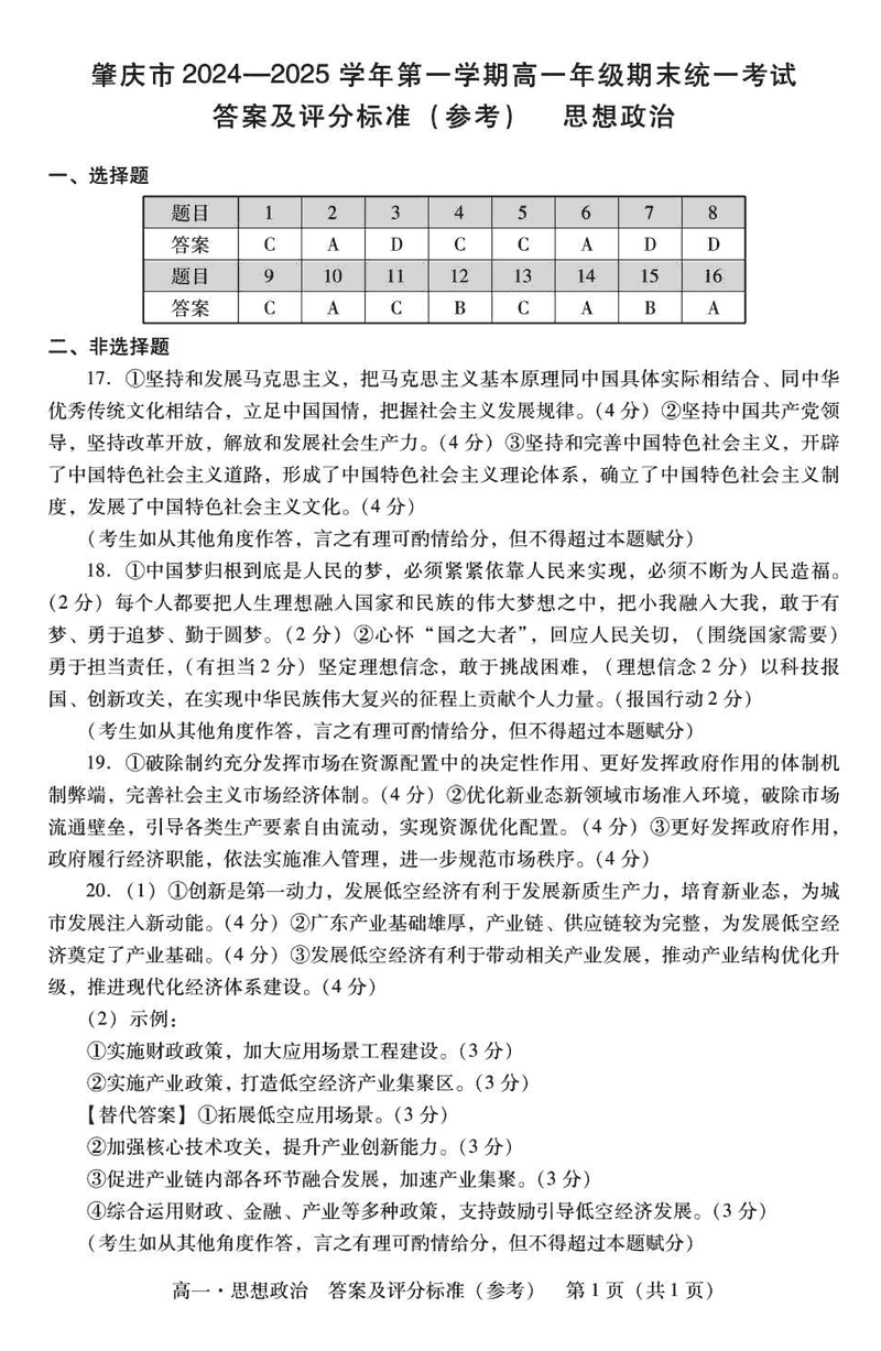 广东肇庆2024-2025学年高一上学期期末政治试题及答案 时间:2025-01-27 广东 高中政治 广东省肇庆市2024-2025学年高一上学期期末政治考试已于近日开考,为方便考生考后及时查看考试情况,查漏补缺、弥补不足,本文整理了试题答案解析相关信息! 政治试题及答案解析