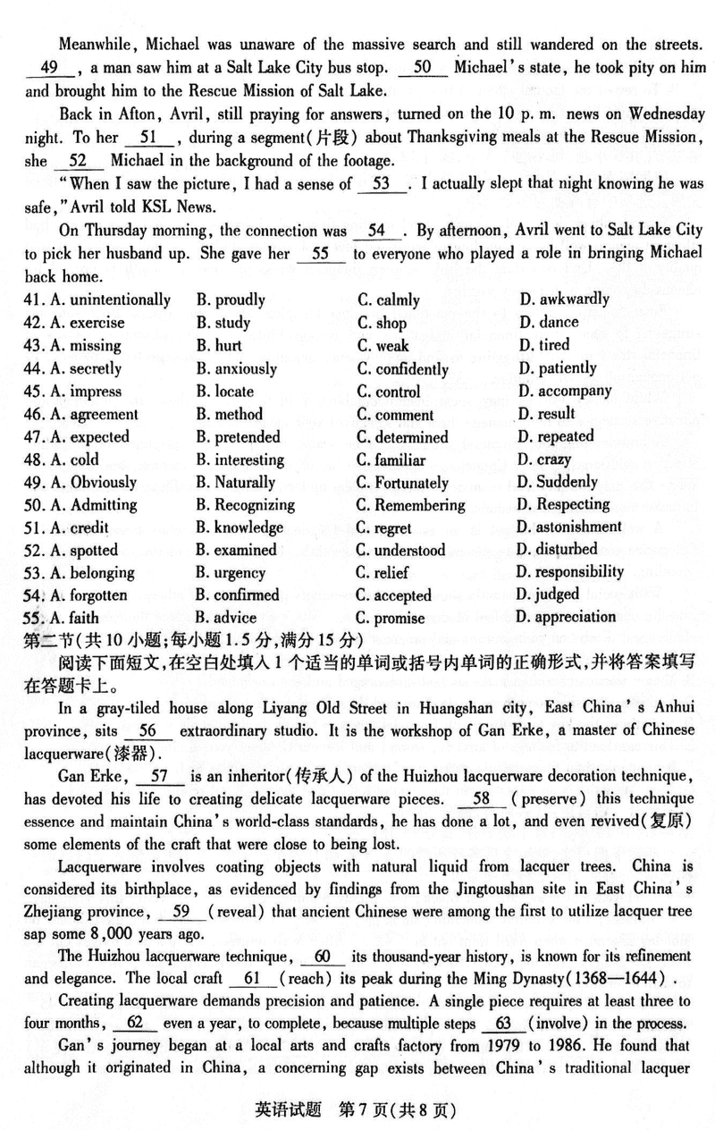 安徽 英语试题
