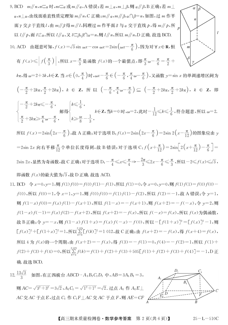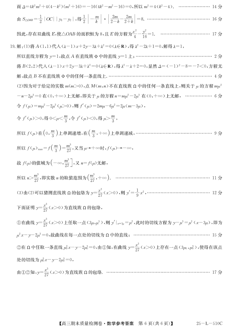 山西三晋卓越联盟2025届高三上学期期末数学试题及答案