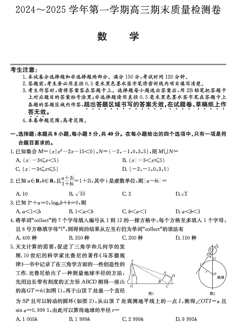 山西省三晋卓越联盟2025届高三上学期期末数学考试已于近日开考,为方便考生考后及时查看考试情况,查漏补缺、弥补不足,本文整理了试题答案解析相关信息!