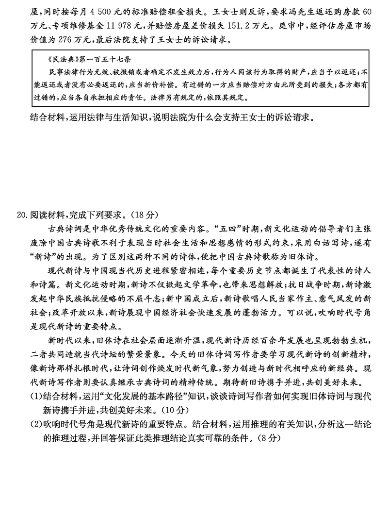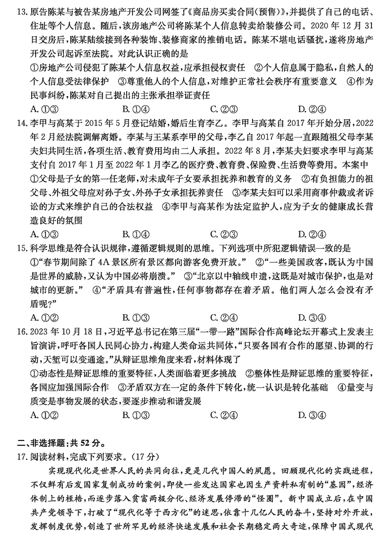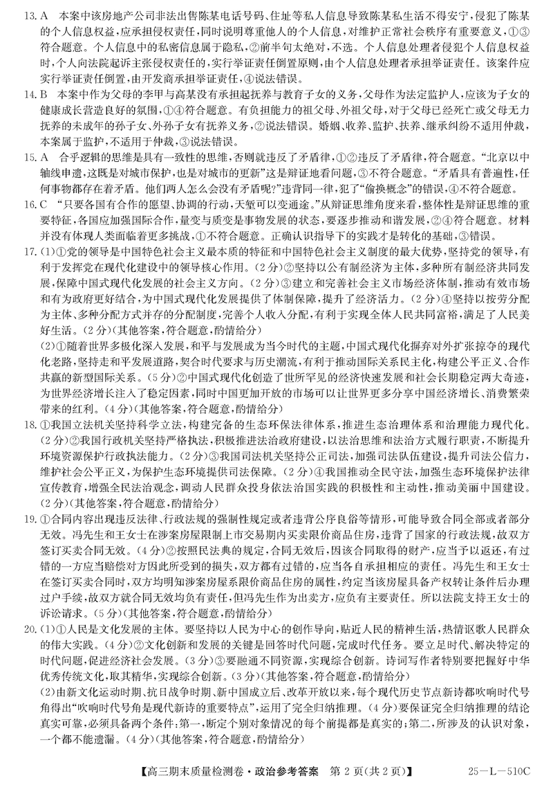 山西三晋卓越联盟2025届高三上学期期末政治试题及答案
