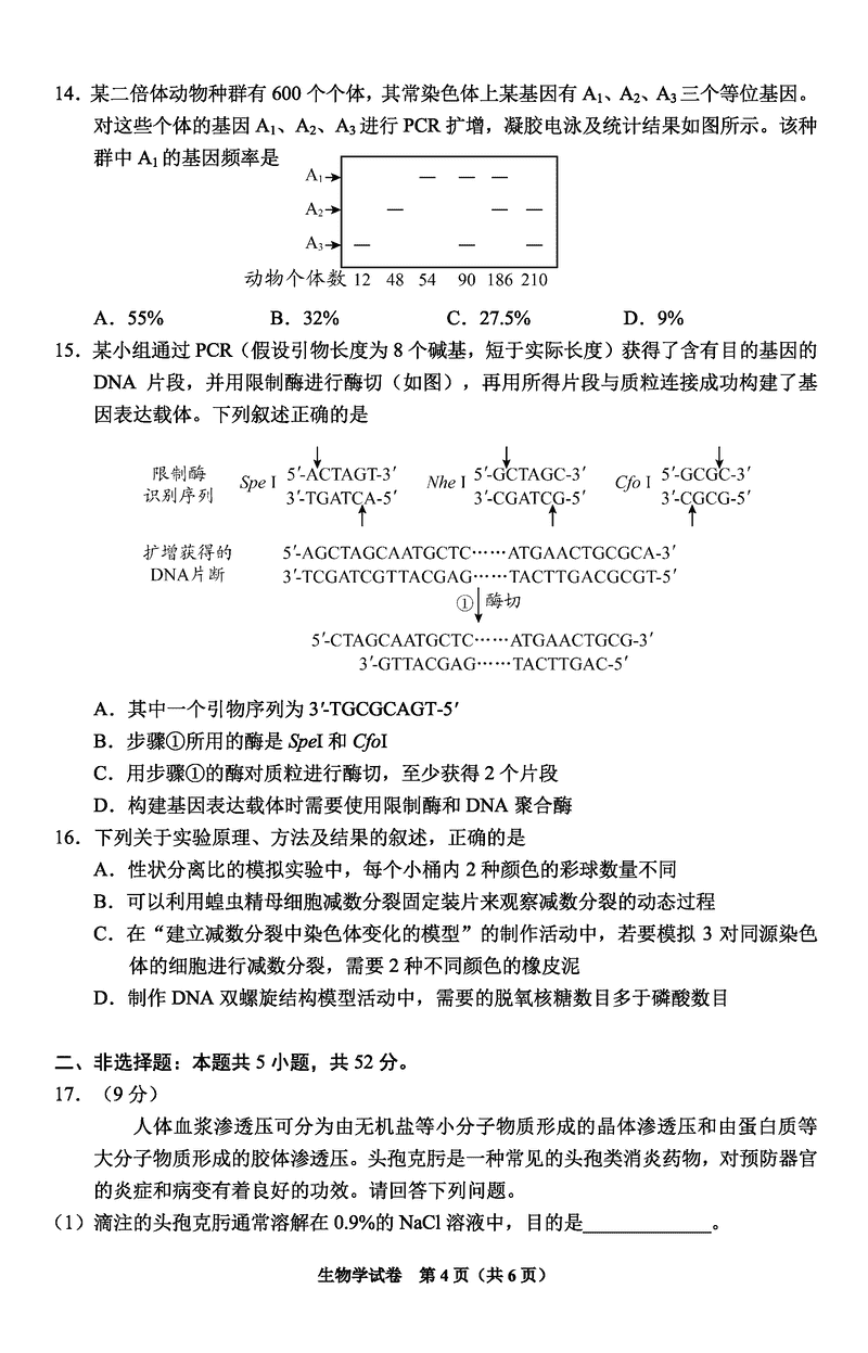 毕节一诊2025届高三上学期第一次诊断生物考试已于近日开考,为方便考生考后及时查看考试情况,查漏补缺、弥补不足,本文整理了试题答案解析相关信息!