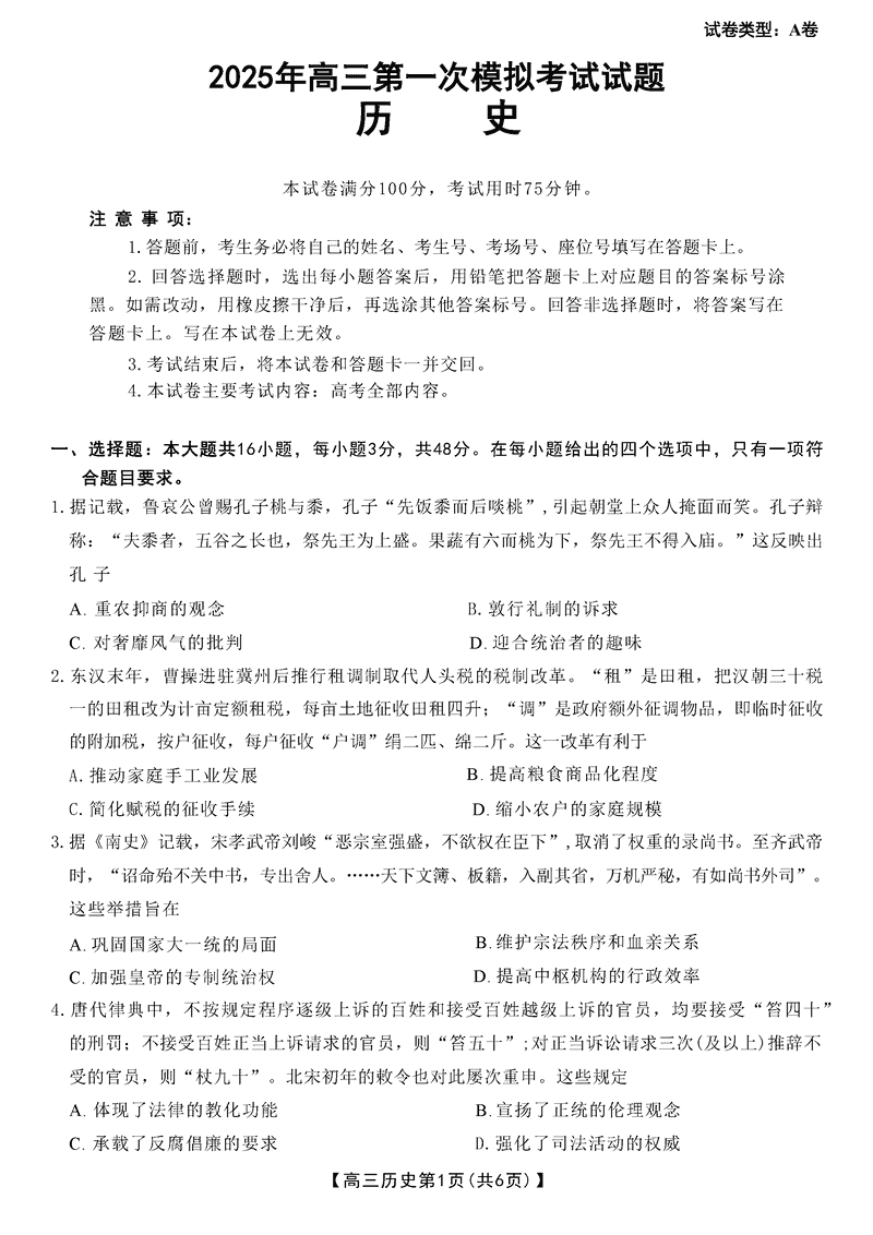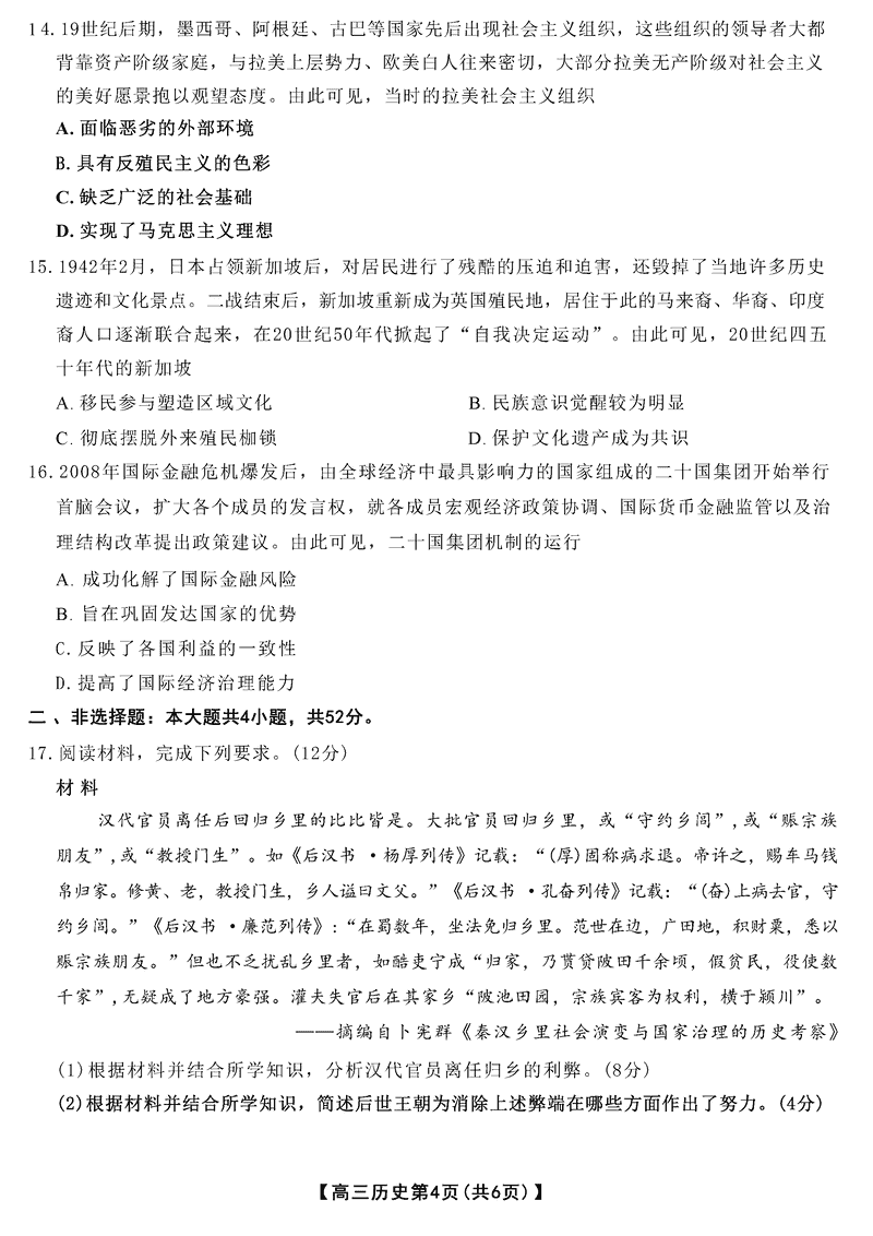 晋城一模2025年高三年第一次模拟历史试题及答案 时间:2025-02-02 山西 文综试题 晋城一模2025年高三年第一次模拟历史考试已于近日开考,为方便考生考后及时查看考试情况,查漏补缺、弥补不足,本文整理了试题答案解析相关信息! 汇总:晋城一模2025年高三年第一次模拟考试试题及答案汇总 历史试题及答案解析