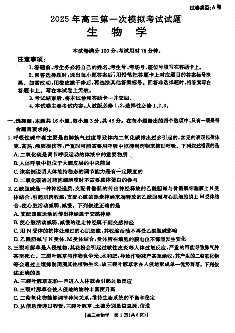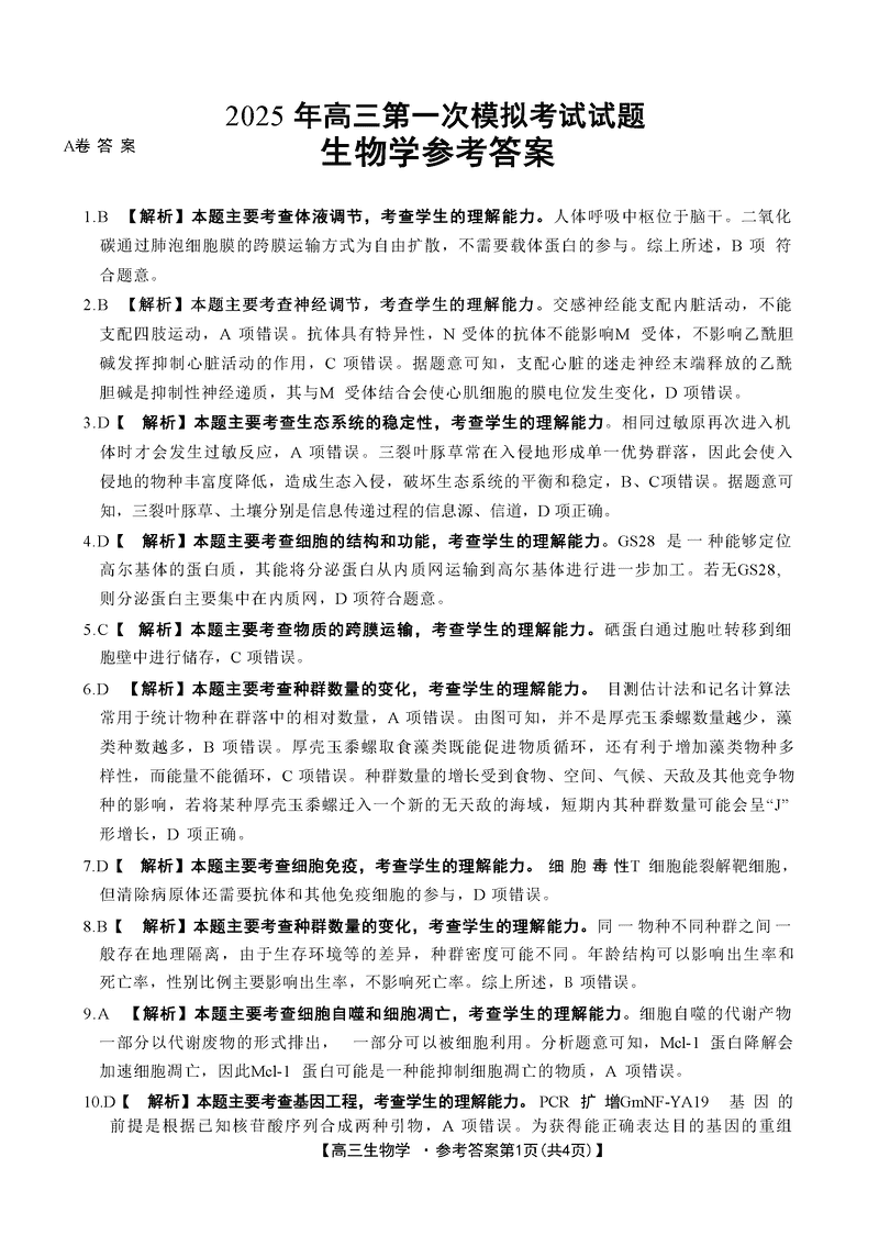 晋城一模2025年高三年第一次模拟生物试题及答案 时间:2025-02-02 山西 理综试题 晋城一模2025年高三年第一次模拟生物考试已于近日开考,为方便考生考后及时查看考试情况,查漏补缺、弥补不足,本文整理了试题答案解析相关信息! 汇总:晋城一模2025年高三年第一次模拟考试试题及答案汇总 生物试题及答案解析