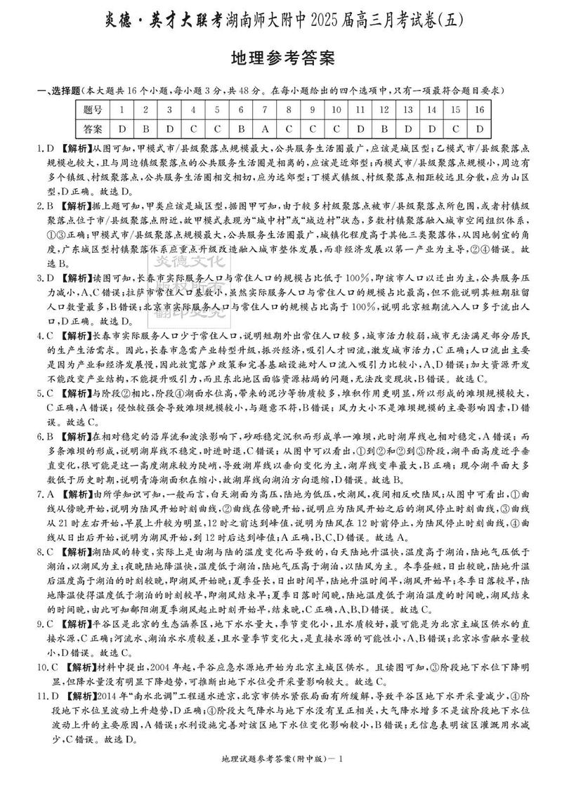 湖南师大附中2025届高三上学期月考(五)地理考试已于近日开考,为方便考生考后及时查看考试情况,查漏补缺、弥补不足,本文整理了试题答案解析相关信息!