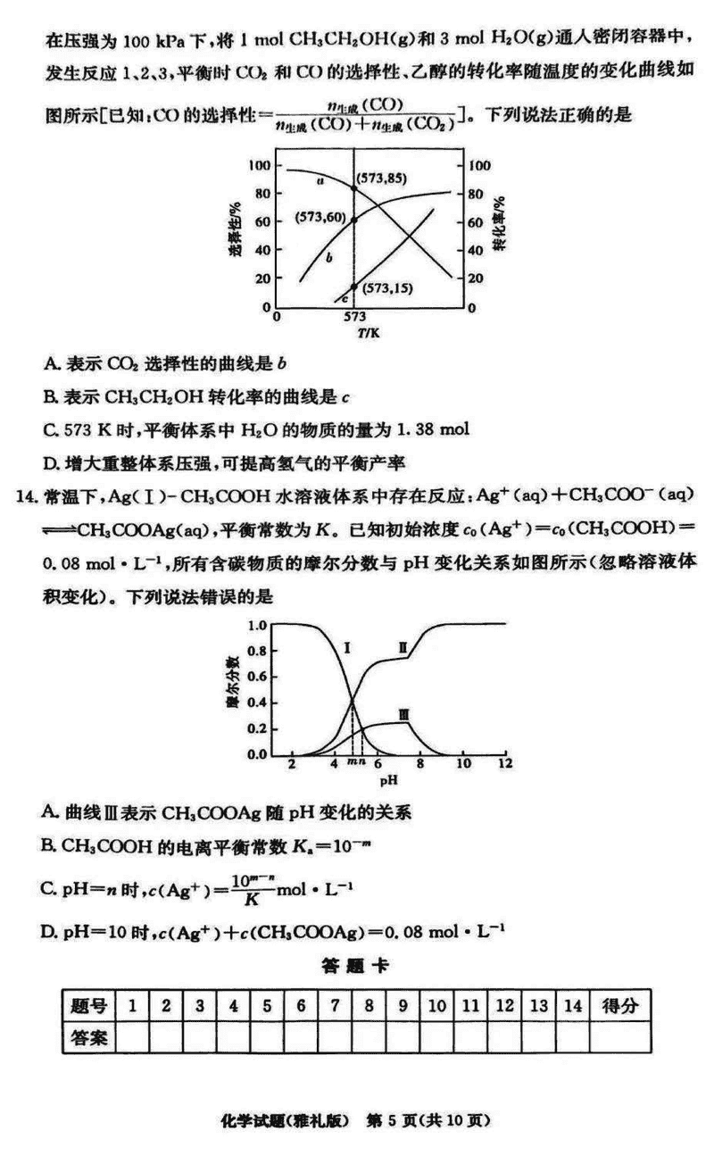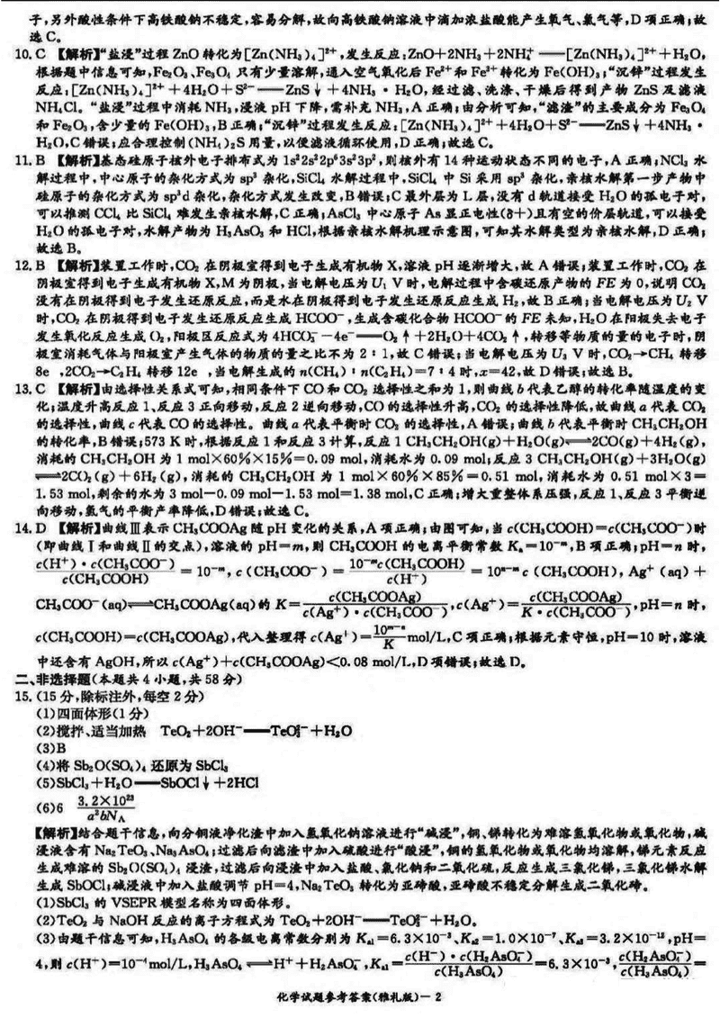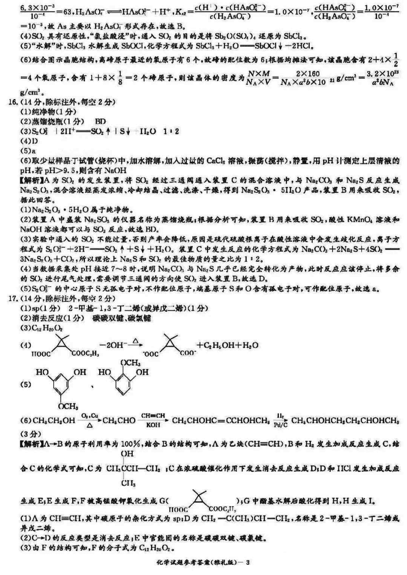 化学试题及答案解析