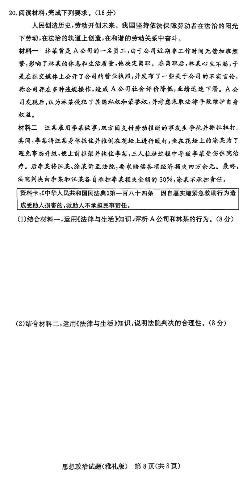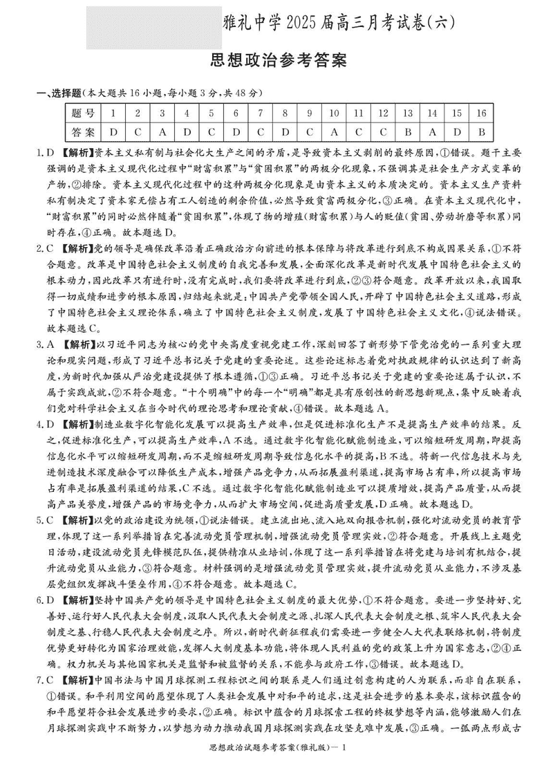 湖南雅礼中学2025届高三月考试卷(六)政治考试已于近日开考,为方便考生考后及时查看考试情况,查漏补缺、弥补不足,本文整理了试题答案解析相关信息!
