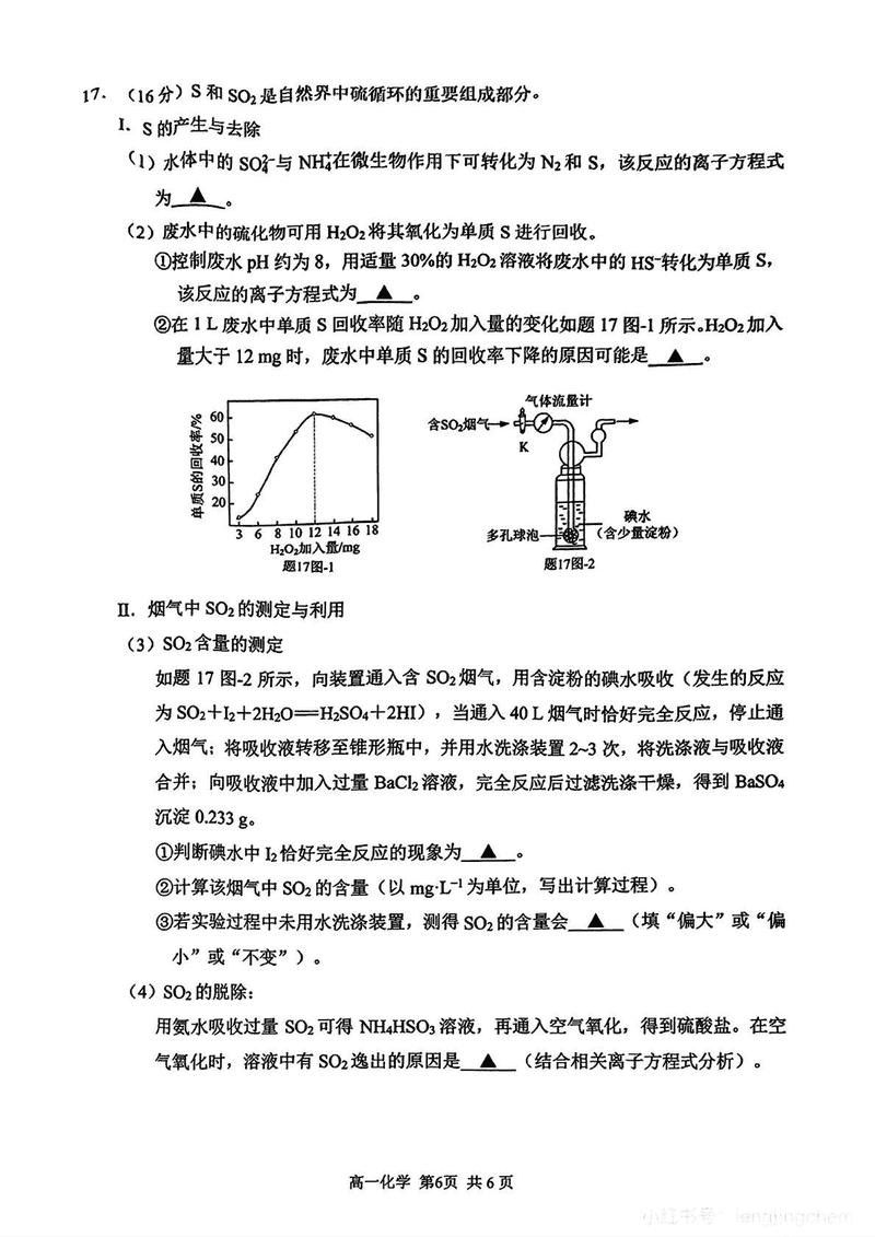 江苏省苏州市2024-2025学年高一上学期1月期末学业阳光指标调研化学考试已于近日开考,为方便考生考后及时查看考试情况,查漏补缺、弥补不足,本文整理了试题答案解析相关信息!
