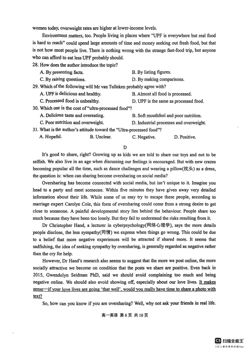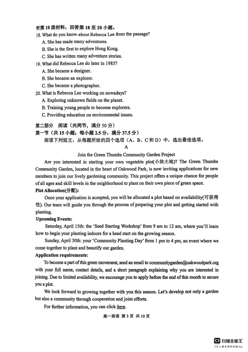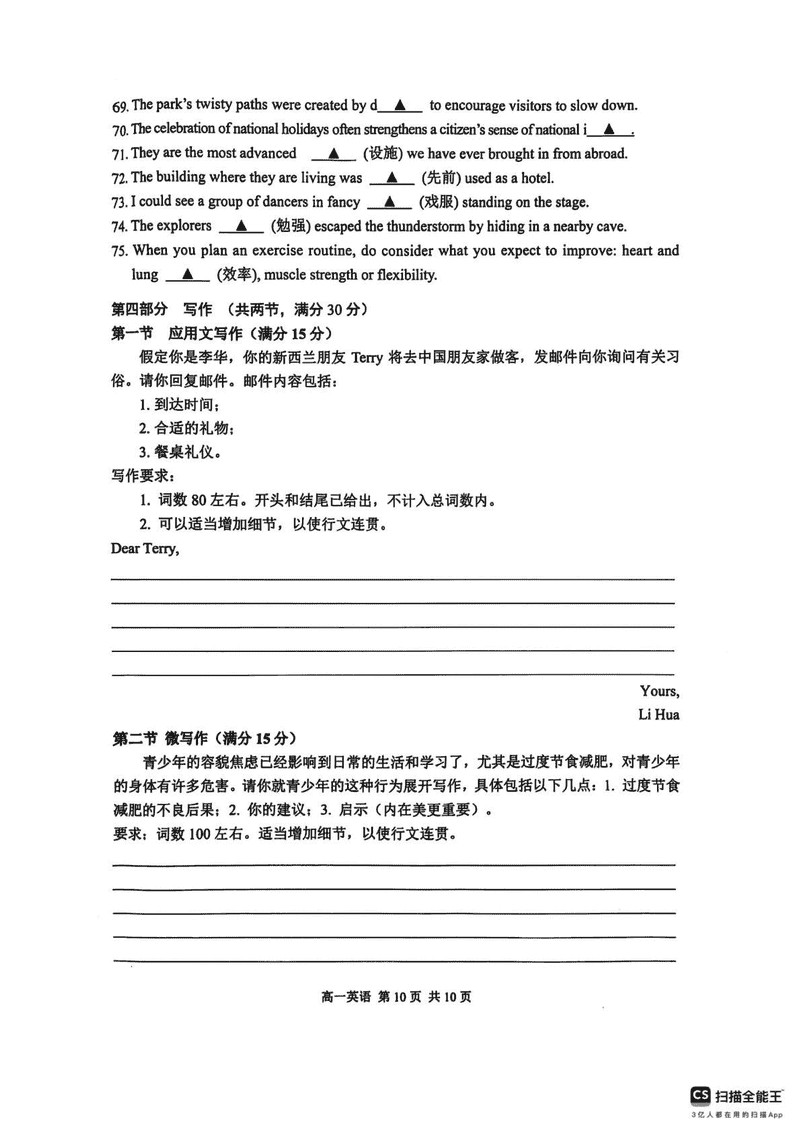苏州2024-2025学年高一上学期1月期末学业阳光指标调研英语试题及答案