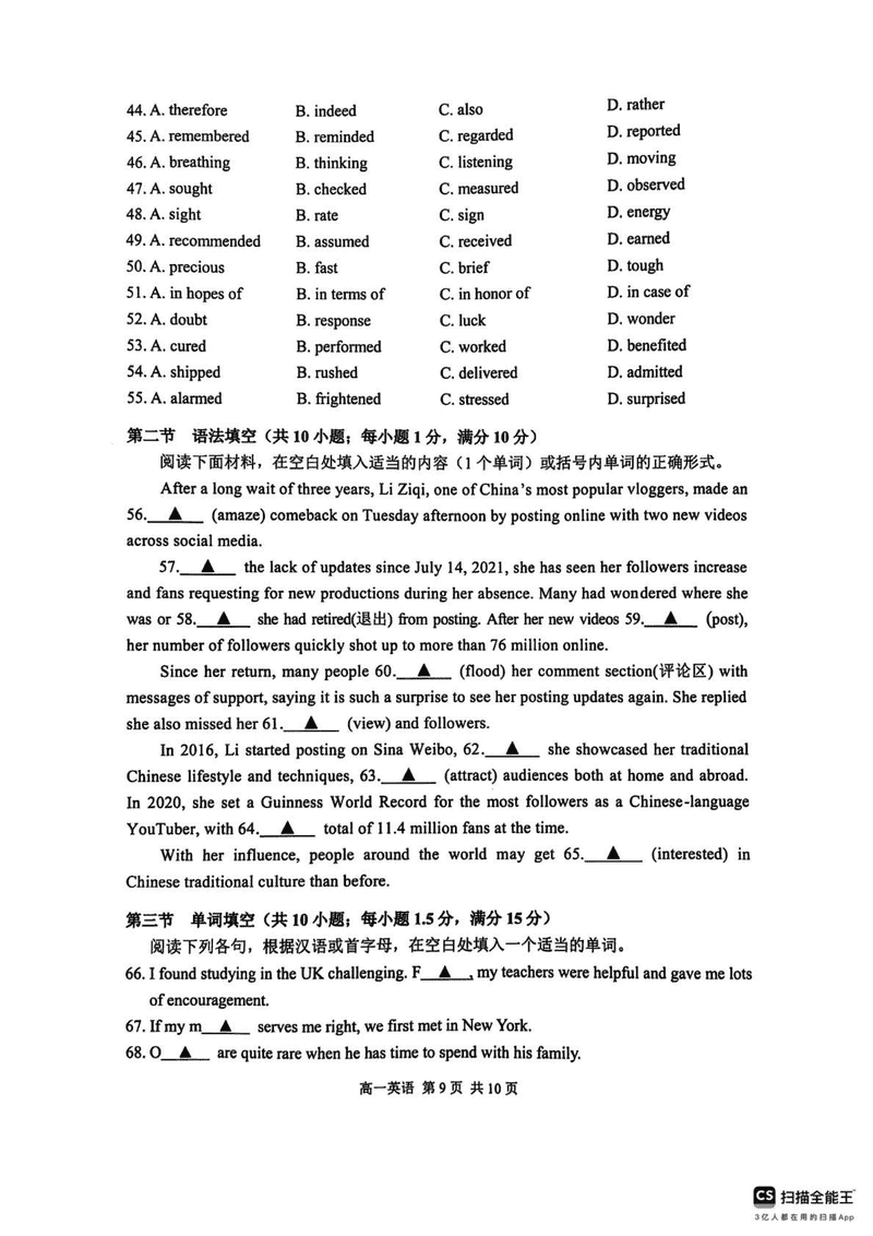 江苏省苏州市2024-2025学年高一上学期1月期末学业阳光指标调研英语考试已于近日开考,为方便考生考后及时查看考试情况,查漏补缺、弥补不足,本文整理了试题答案解析相关信息!