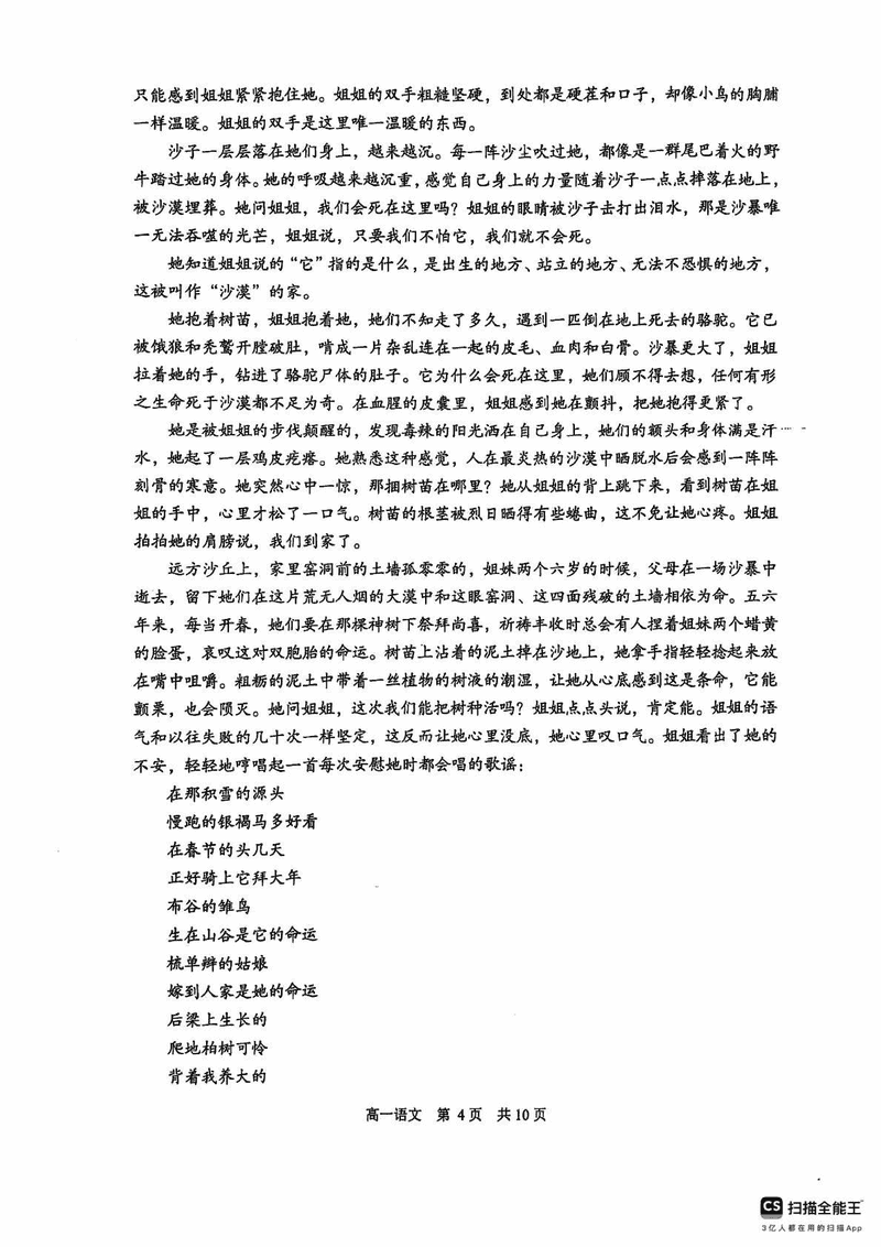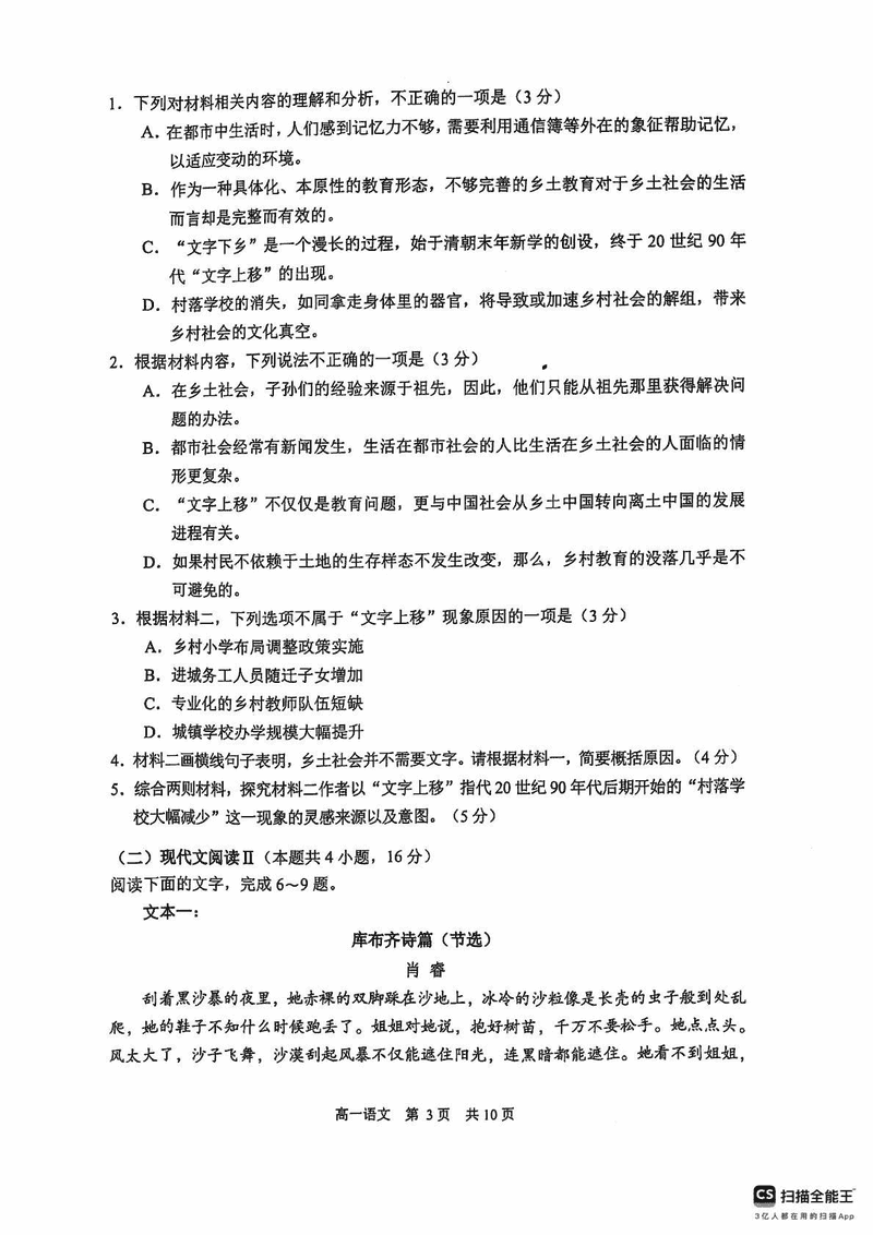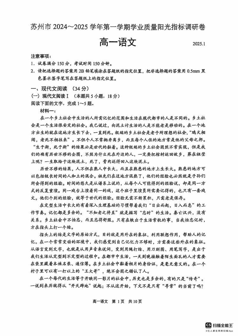 苏州2024-2025学年高一上学期1月期末学业阳光指标调研语文试题及答案