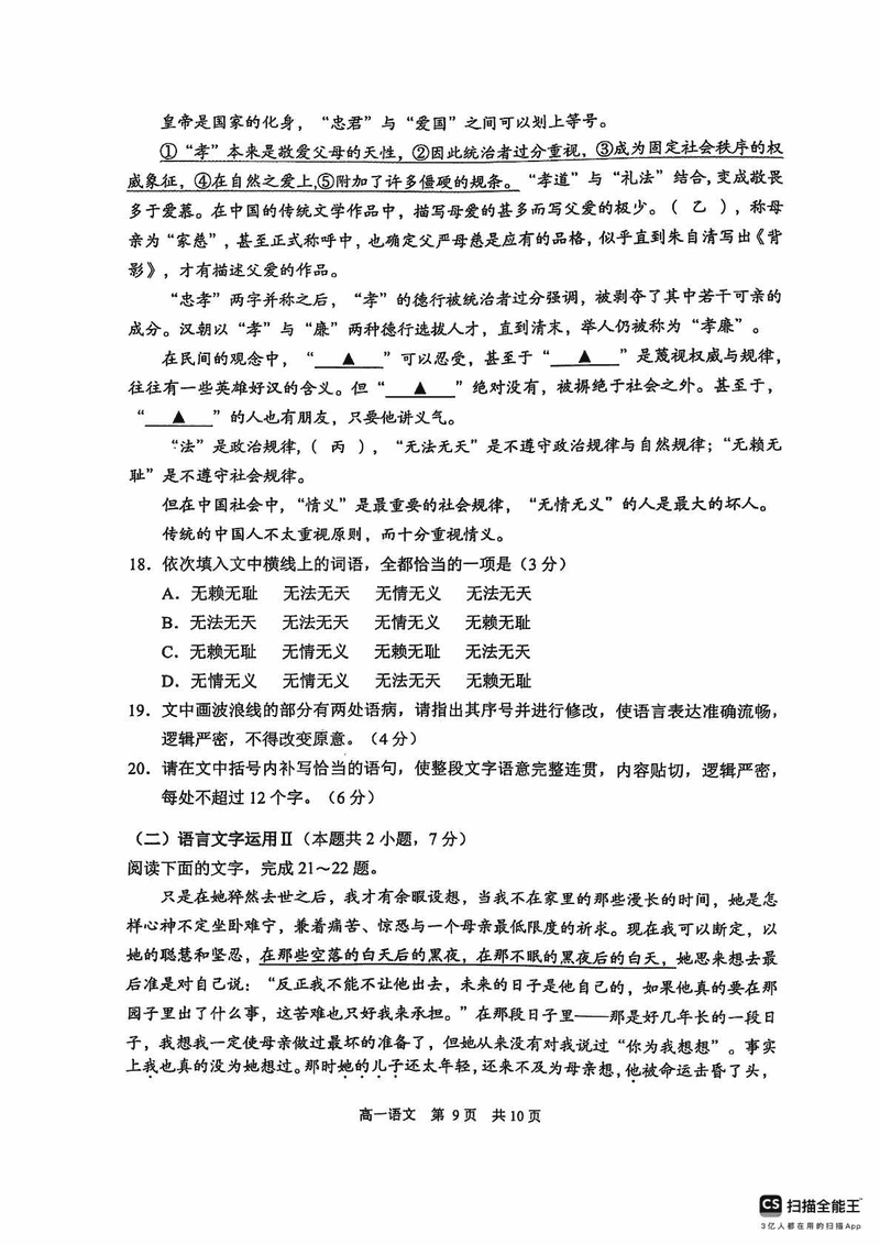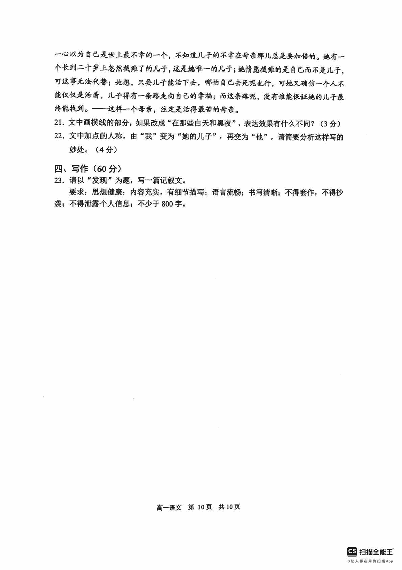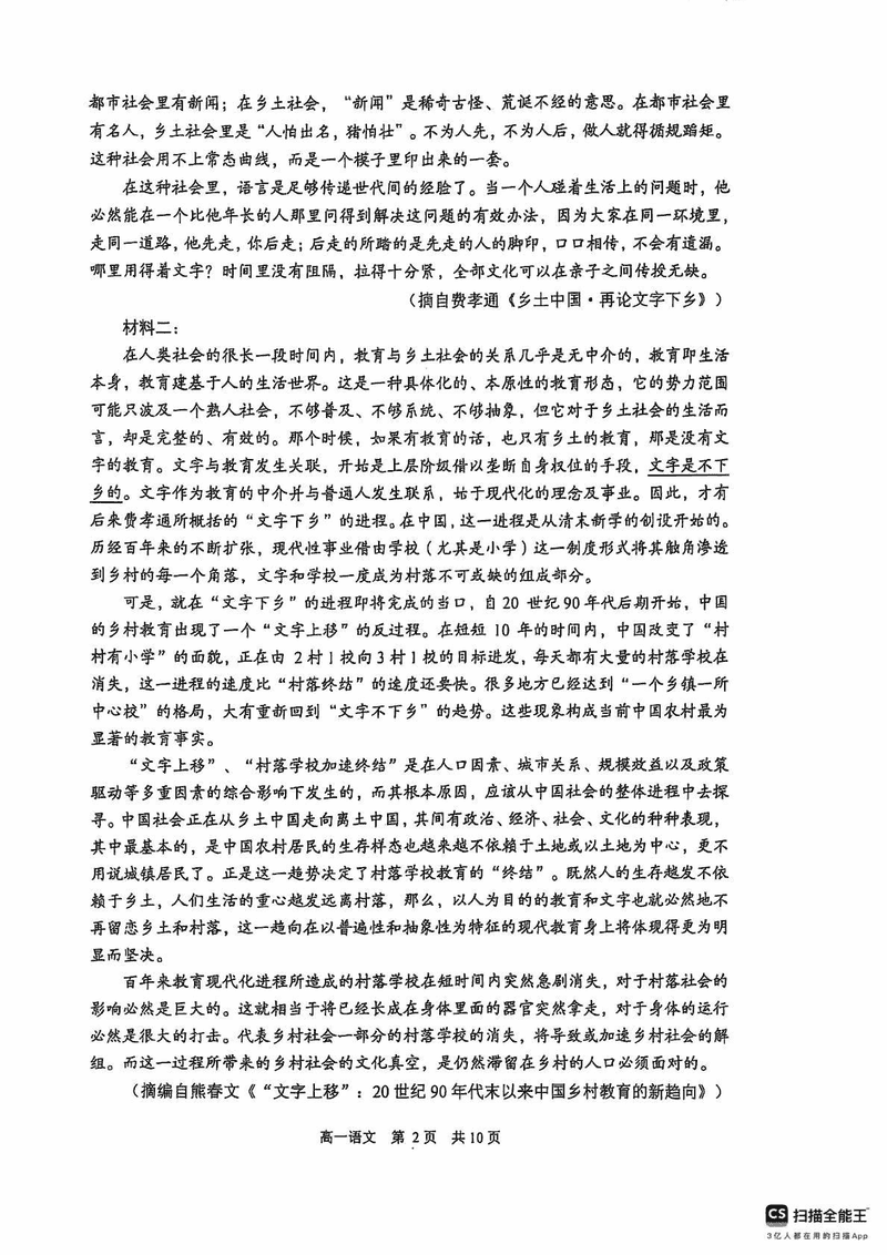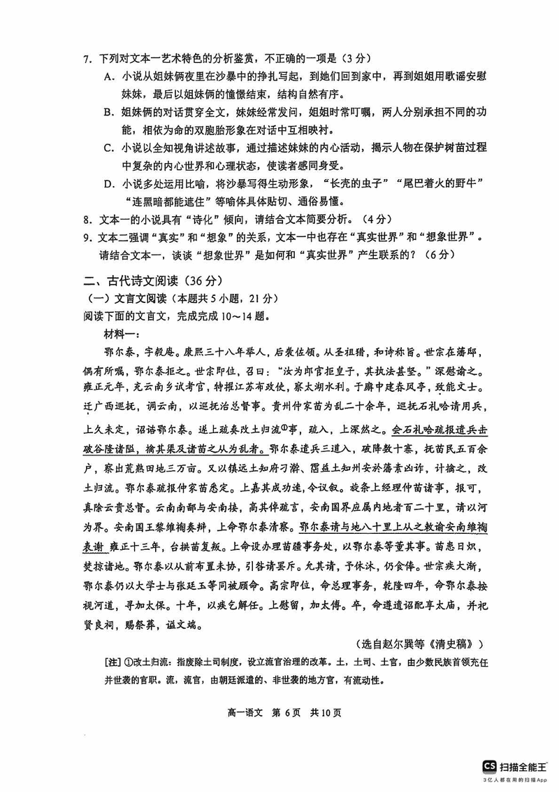 苏州2024-2025学年高一上学期1月期末学业阳光指标调研语文试题及答案