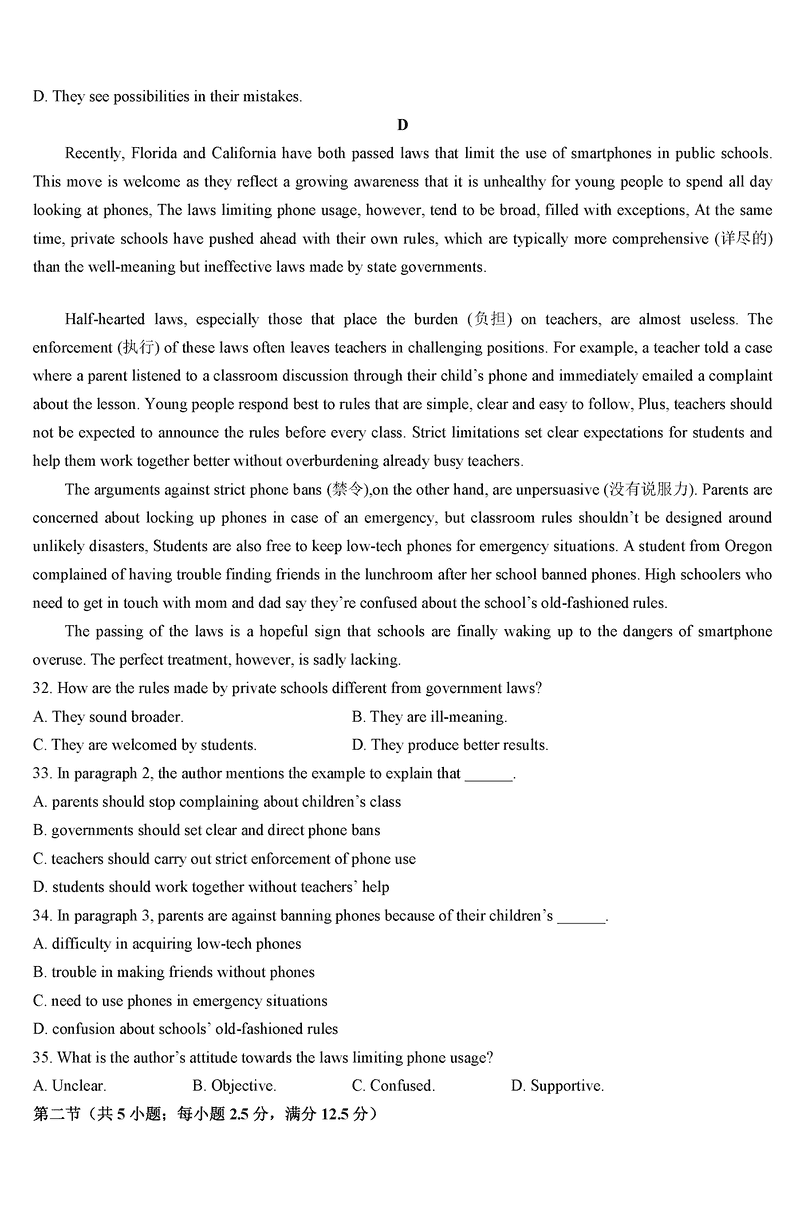 江苏南京2024-2025学年高一上学期期末英语试题及答案 时间:2025-02-07 江苏 高中英语 江苏省南京市2024-2025学年高一上学期期末英语考试已于近日开考,为方便考生考后及时查看考试情况,查漏补缺、弥补不足,本文整理了试题答案解析相关信息! 英语试题及答案解析