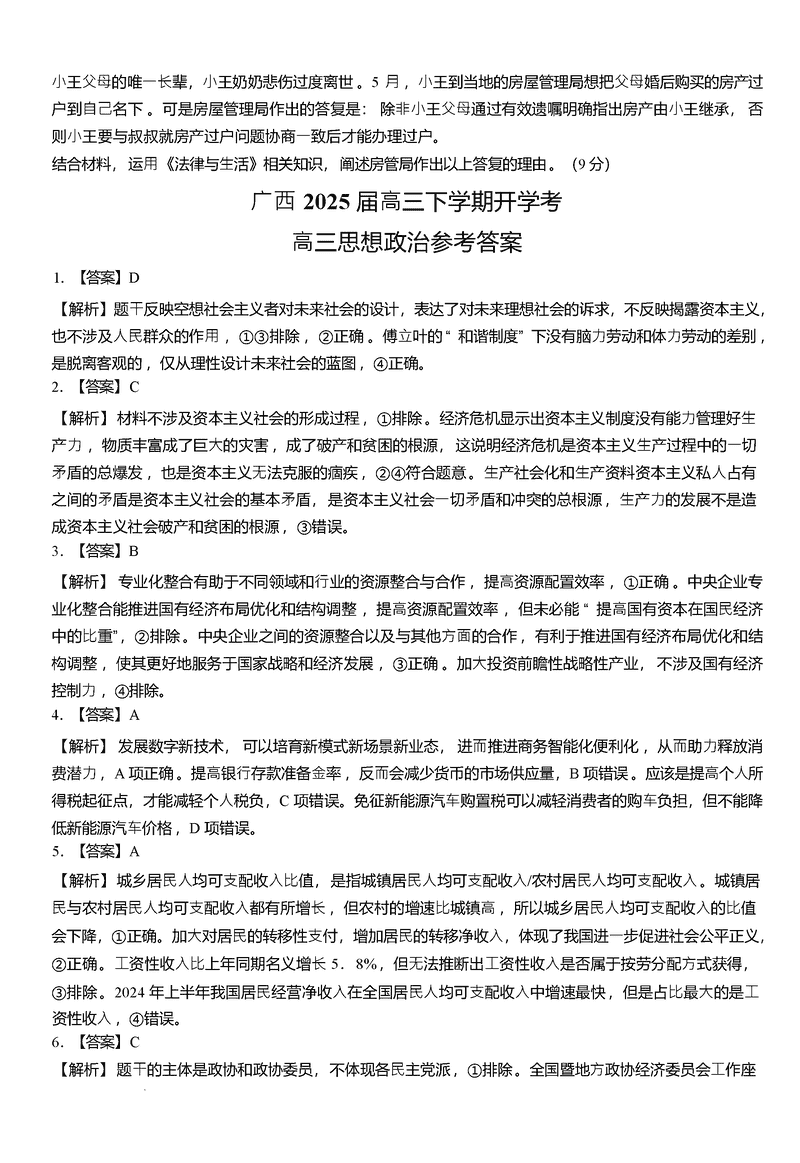 2025届广西上进联考高三下学期2月开学政治考试已于近日开考,为方便考生考后及时查看考试情况,查漏补缺、弥补不足,本文整理了试题答案解析相关信息!