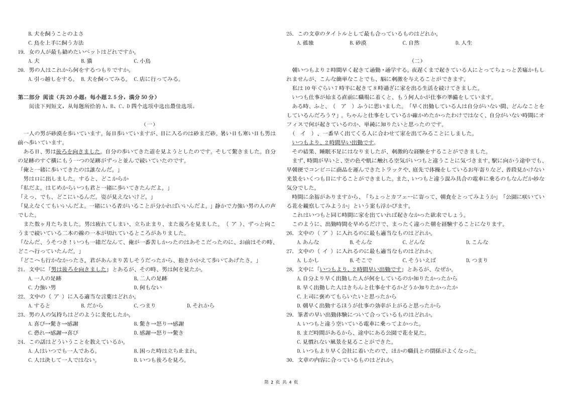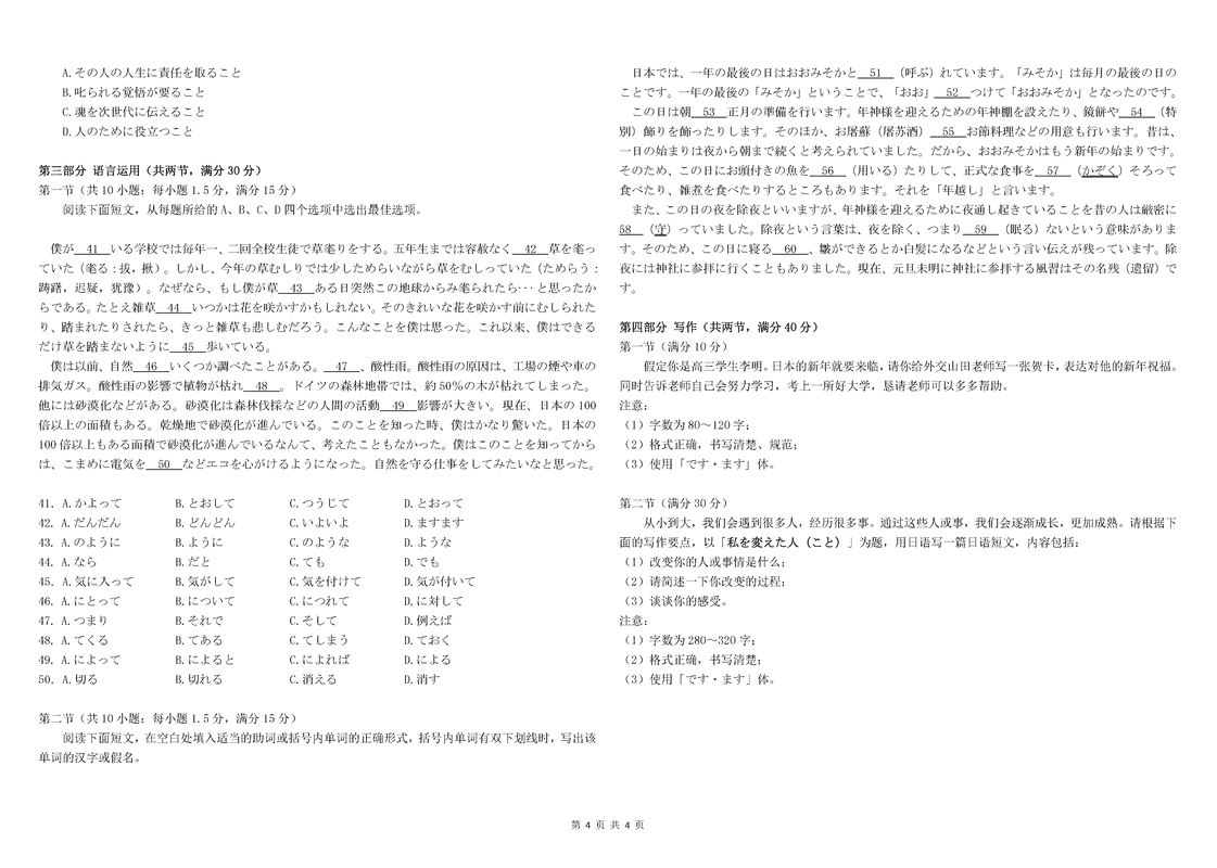 2025年湖北省新八校协作体高三2月联考日语试题及答案