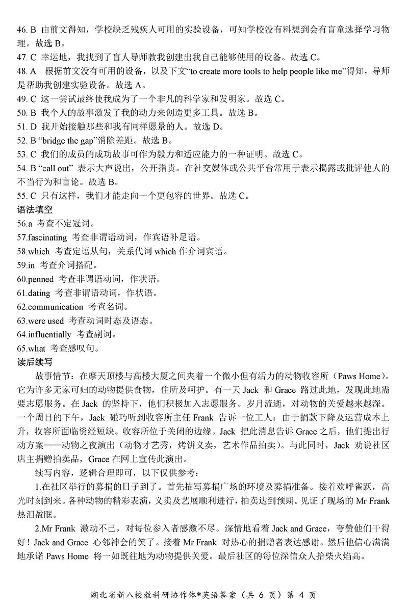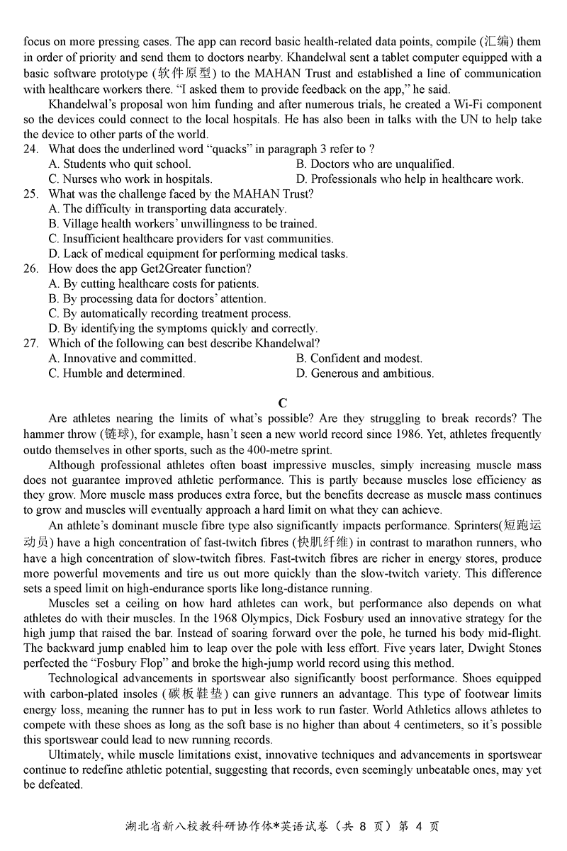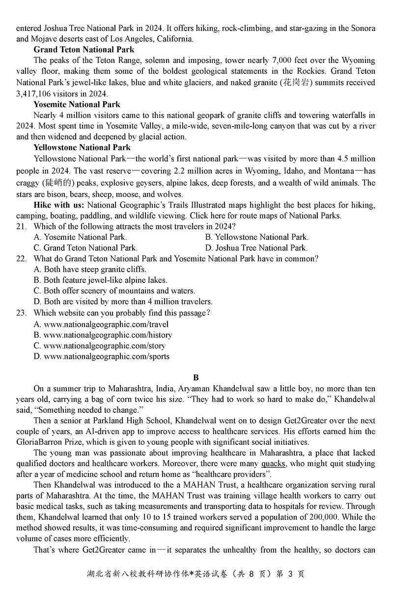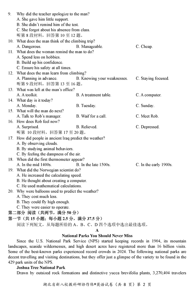 2025年湖北省新八校协作体高三2月联考英语考试已于近日开考,为方便考生考后及时查看考试情况,查漏补缺、弥补不足,本文整理了试题答案解析相关信息!