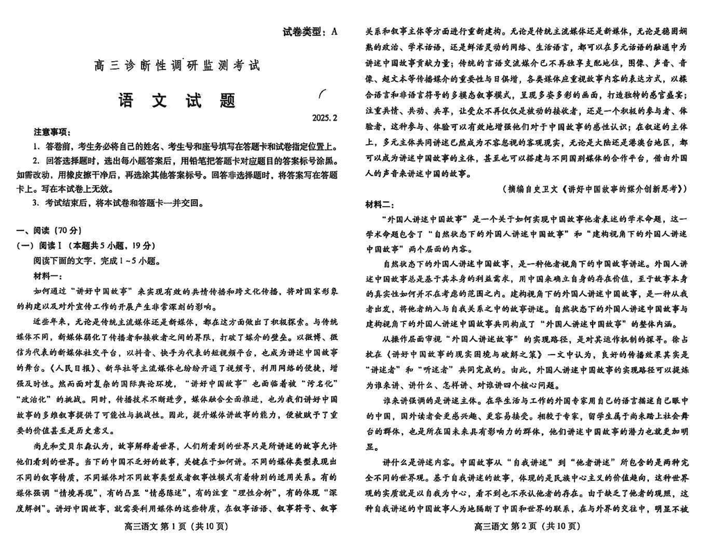 山东潍坊2025届高三2月诊断性调研监测语文试题及答案