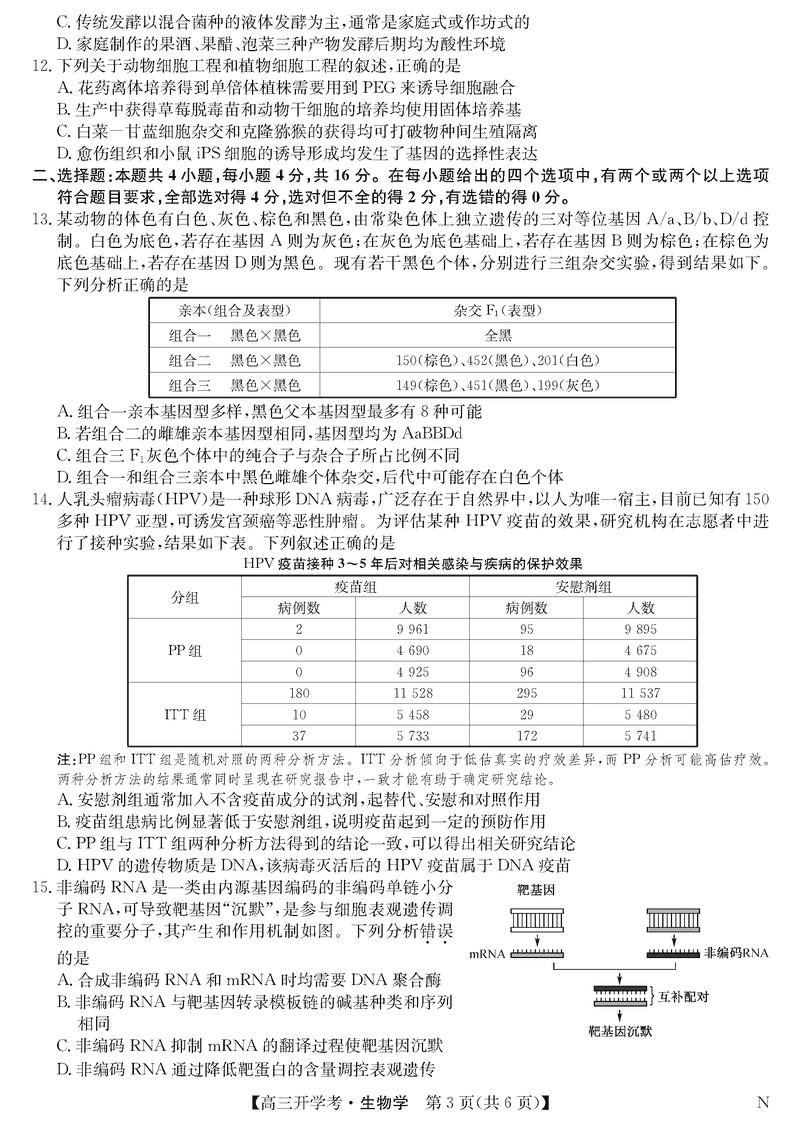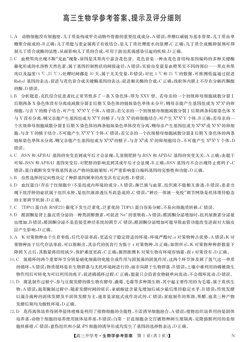 九师联盟2025届高三下学期2月开学考生物试题及答案