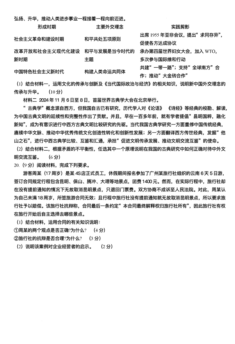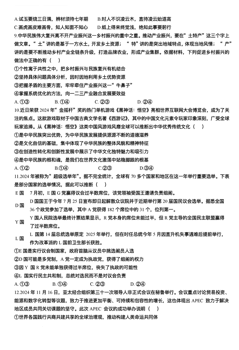 2025届山东省实验中学高三下学期第四次诊断政治试题及答案