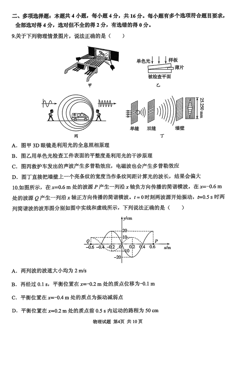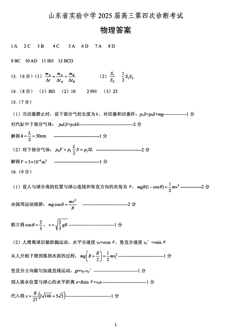 2025届山东省实验中学高三下学期第四次诊断物理考试已于近日开考,为方便考生考后及时查看考试情况,查漏补缺、弥补不足,本文整理了试题答案解析相关信息!