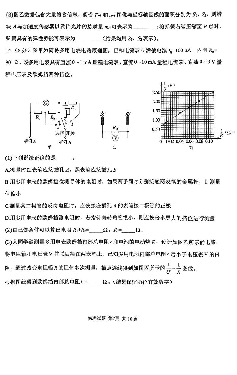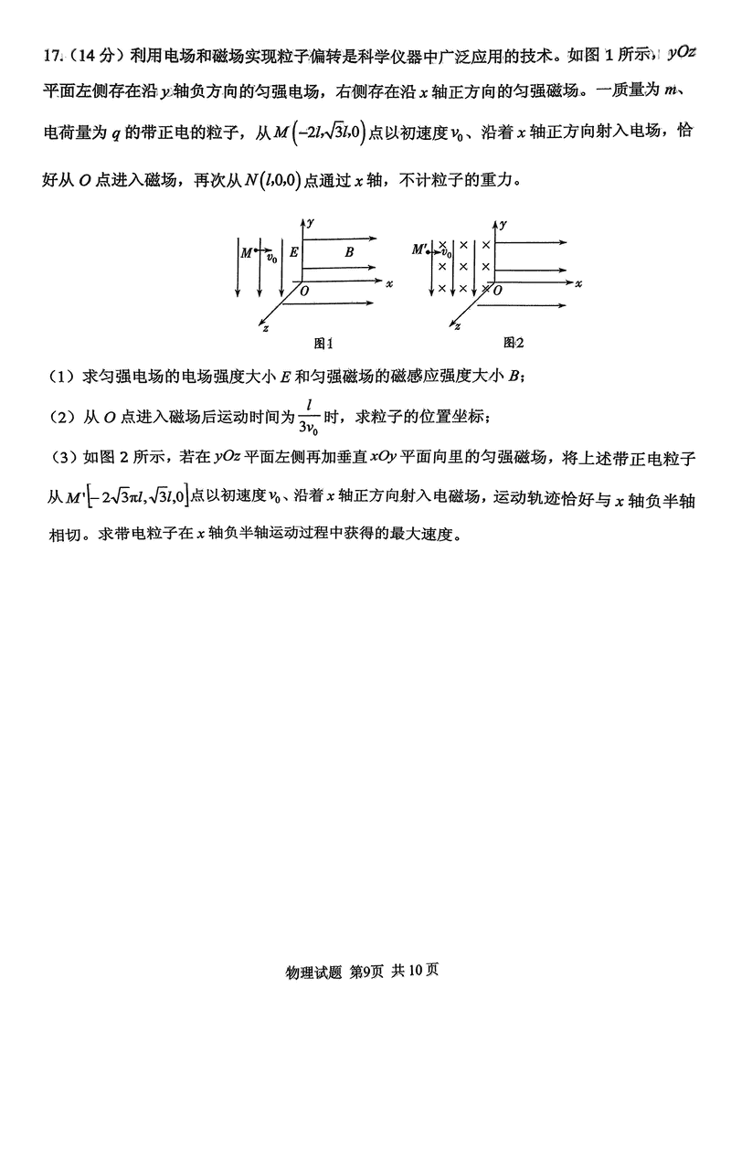 2025届山东省实验中学高三下学期第四次诊断物理试题及答案