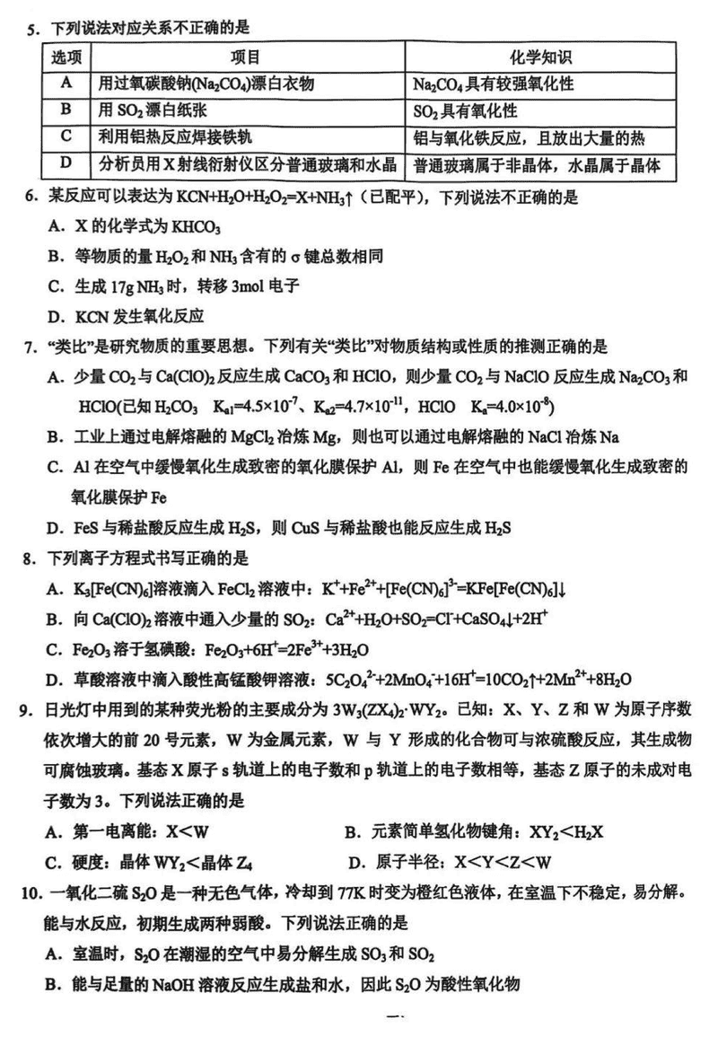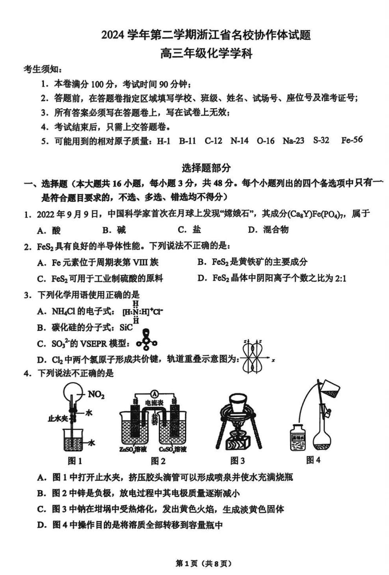 2025年2月浙江G12名校协作体高三返校考化学考试已于近日开考,为方便考生考后及时查看考试情况,查漏补缺、弥补不足,本文整理了试题答案解析相关信息!