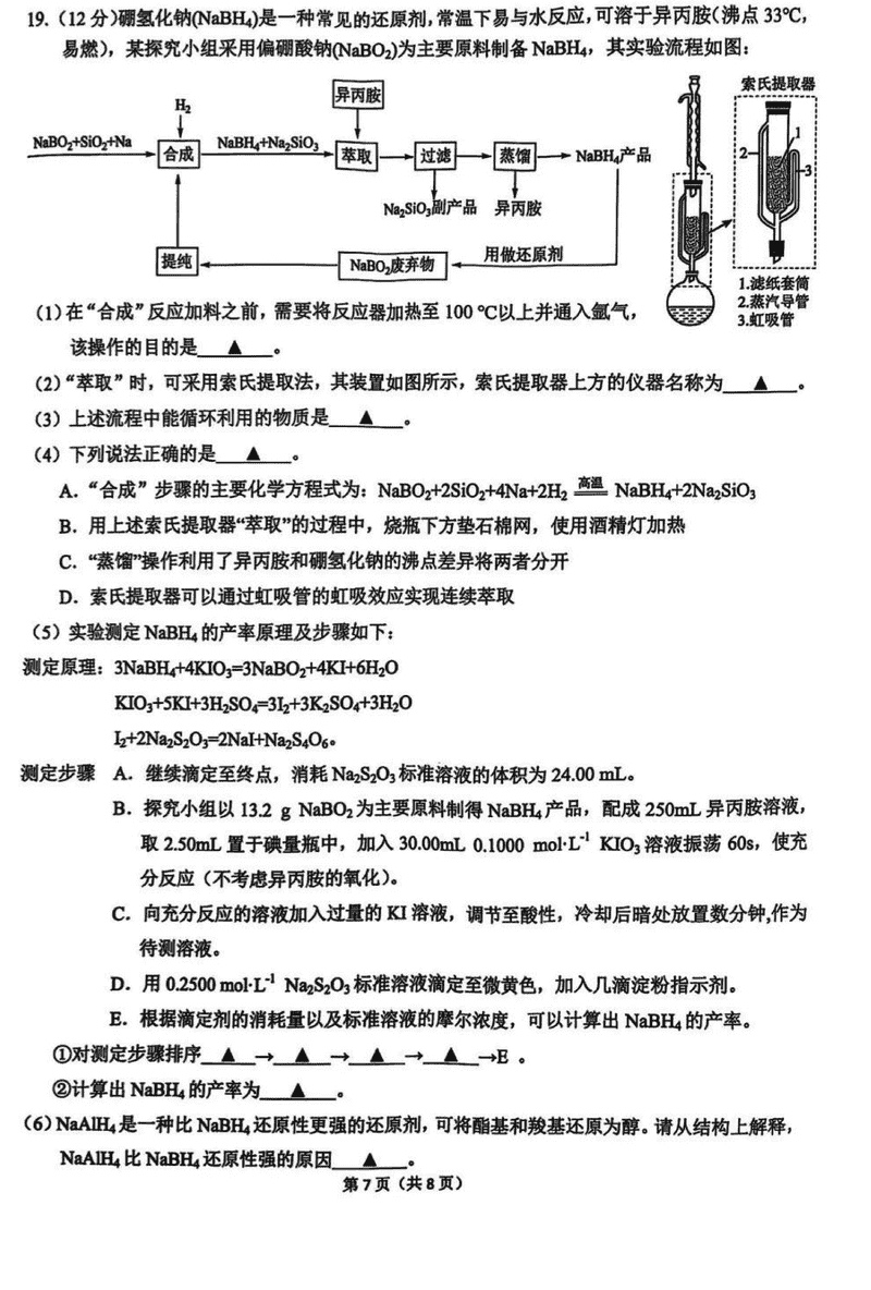 2025年2月浙江G12名校协作体高三返校考化学试题及答案