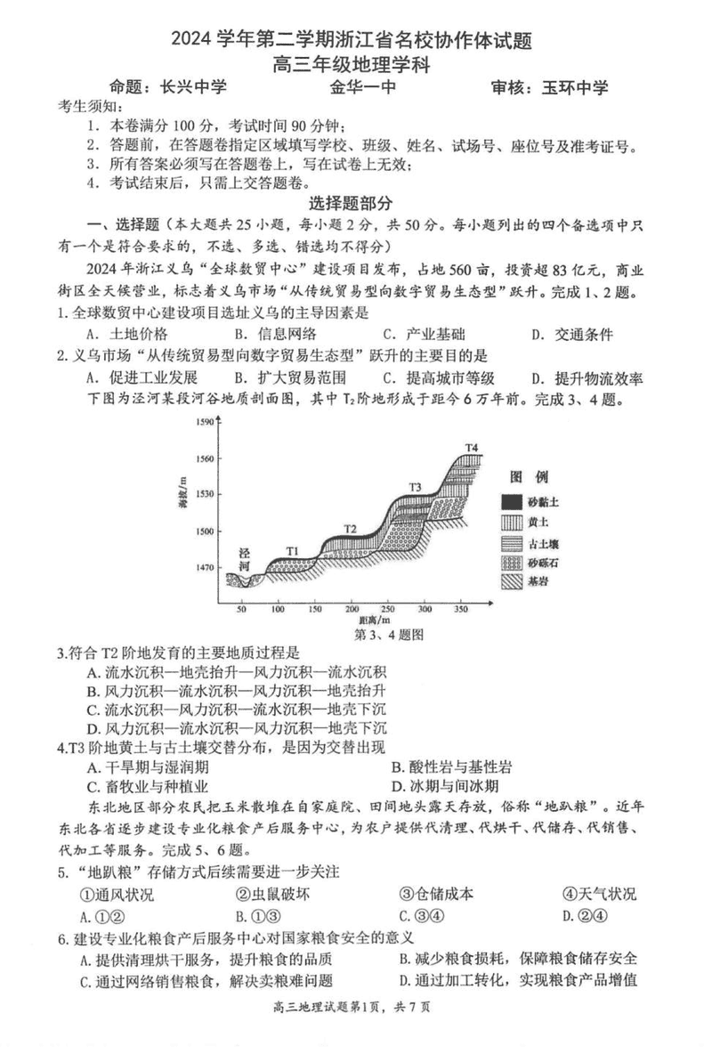 2025年2月浙江G12名校协作体高三返校考地理考试已于近日开考,为方便考生考后及时查看考试情况,查漏补缺、弥补不足,本文整理了试题答案解析相关信息!