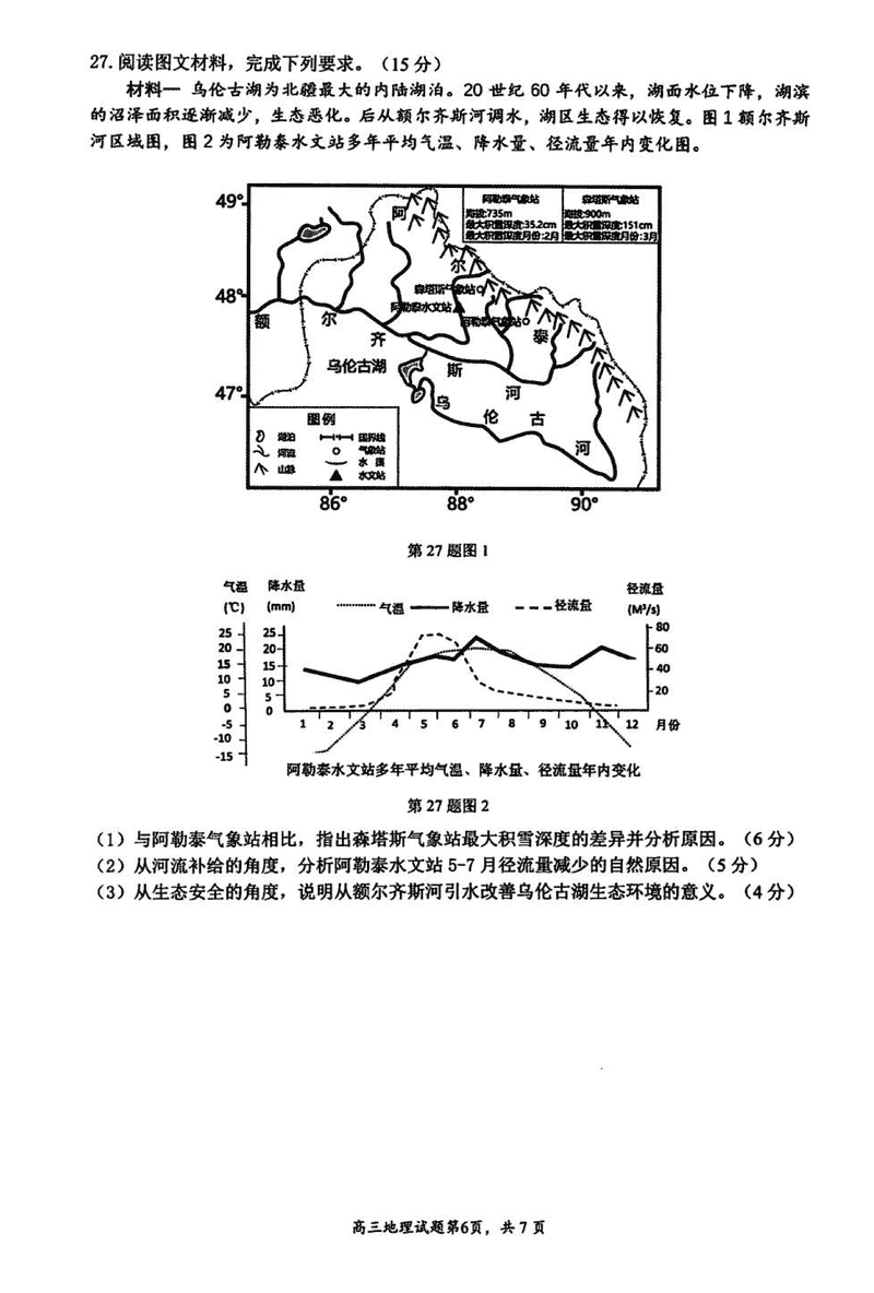 2025年2月浙江G12名校协作体高三返校考地理试题及答案