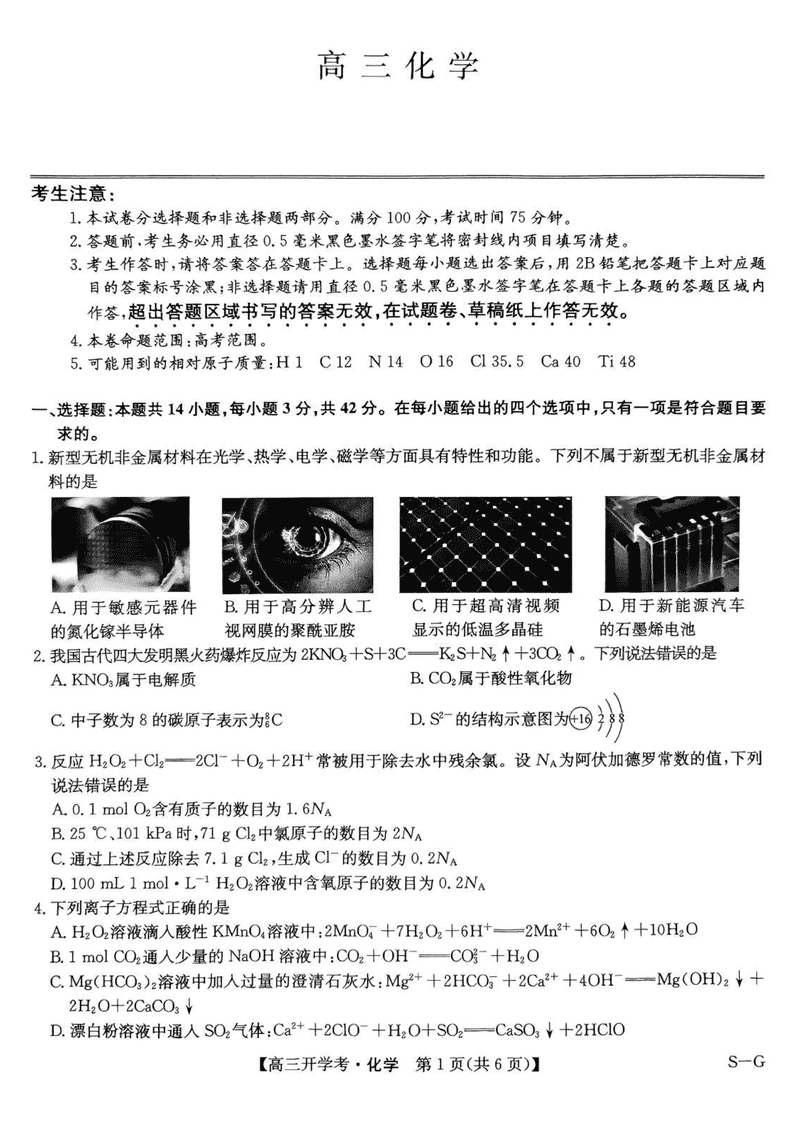 九师联盟2025届高三2月开学考化学试题及答案 时间:2025-02-16 理综试题 九师联盟2025届高三2月开学考化学考试已于近日开考,为方便考生考后及时查看考试情况,查漏补缺、弥补不足,本文整理了试题答案解析相关信息! 汇总:九师联盟2025届高三2月开学考试题及答案汇总 化学试题及答案解析