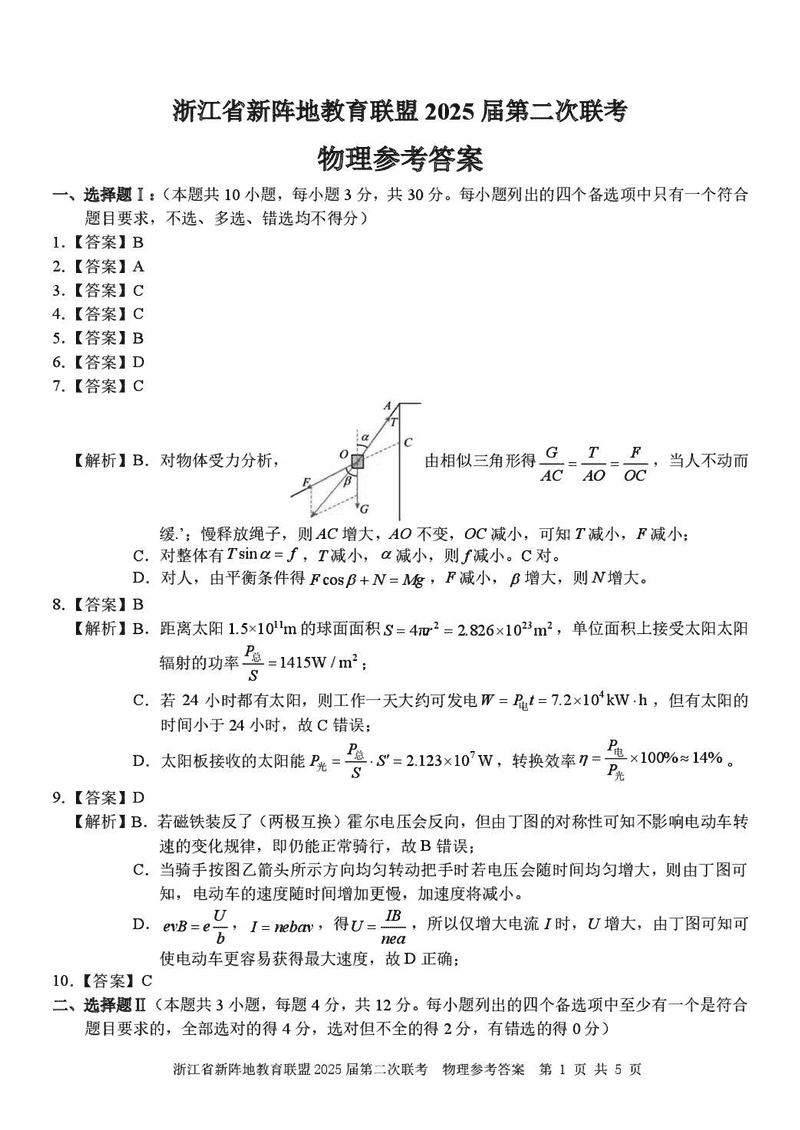 浙江新阵地教育联盟2025届高三第二次联考物理考试已于近日开考,为方便考生考后及时查看考试情况,查漏补缺、弥补不足,本文整理了试题答案解析相关信息!
