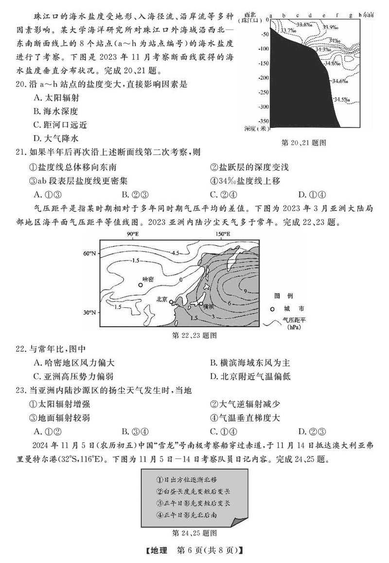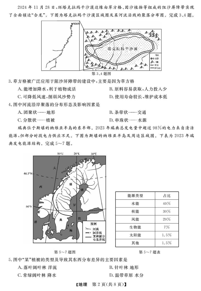 浙江强基联盟2025年2月高三下学期联考地理试题及答案