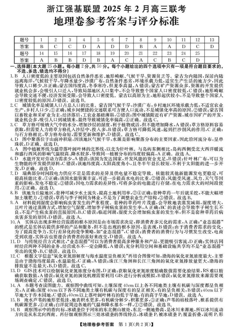 浙江强基联盟2025年2月高三下学期联考地理考试已于近日开考,为方便考生考后及时查看考试情况,查漏补缺、弥补不足,本文整理了试题答案解析相关信息!