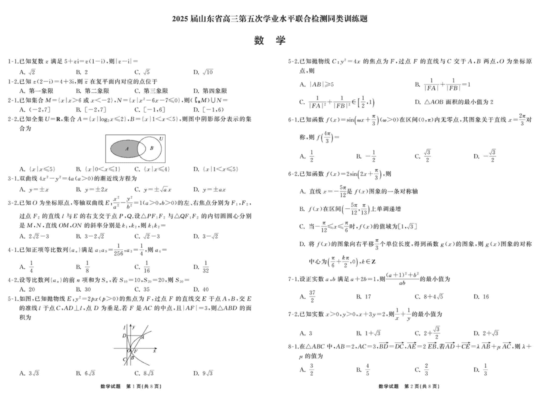 山东齐鲁名校2025届高三下学期第五次学业水平联合检测数学考试已于近日开考,为方便考生考后及时查看考试情况,查漏补缺、弥补不足,本文整理了试题答案解析相关信息!