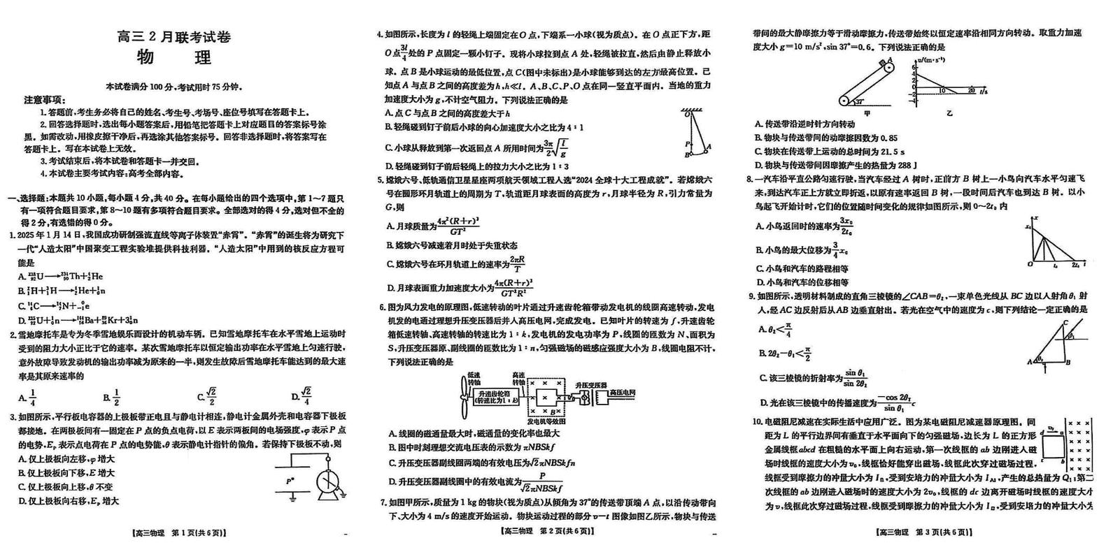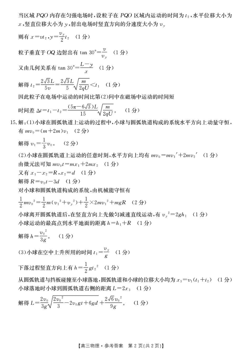 湖北鄂东新领先协作体2025届高三下学期2月联考物理试题及答案