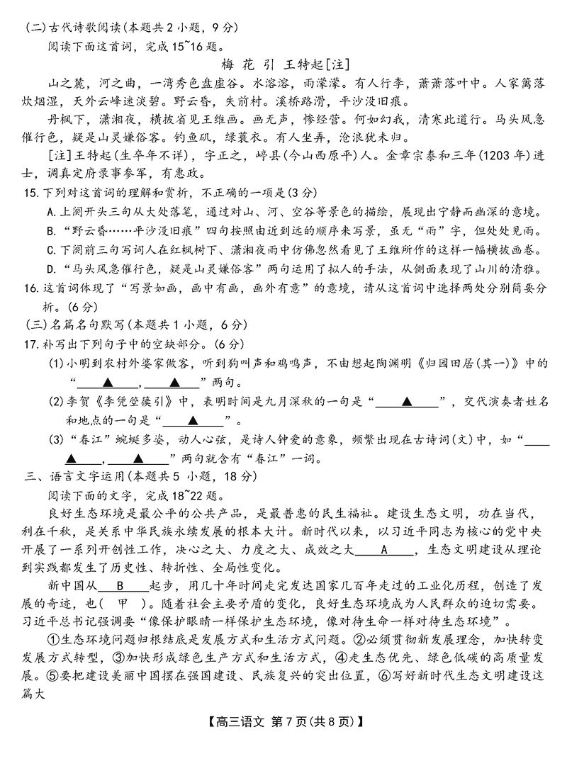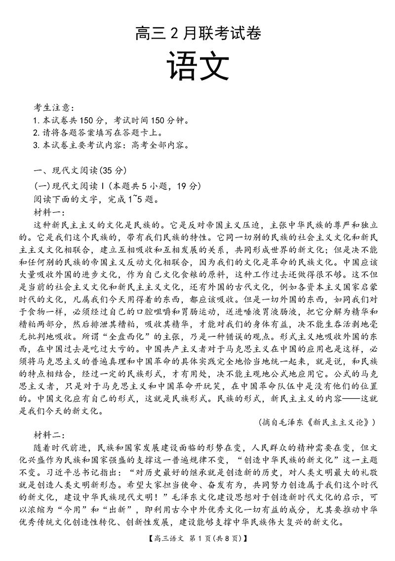 湖北鄂东新领先协作体2025届高三下学期2月联考语文试题及答案